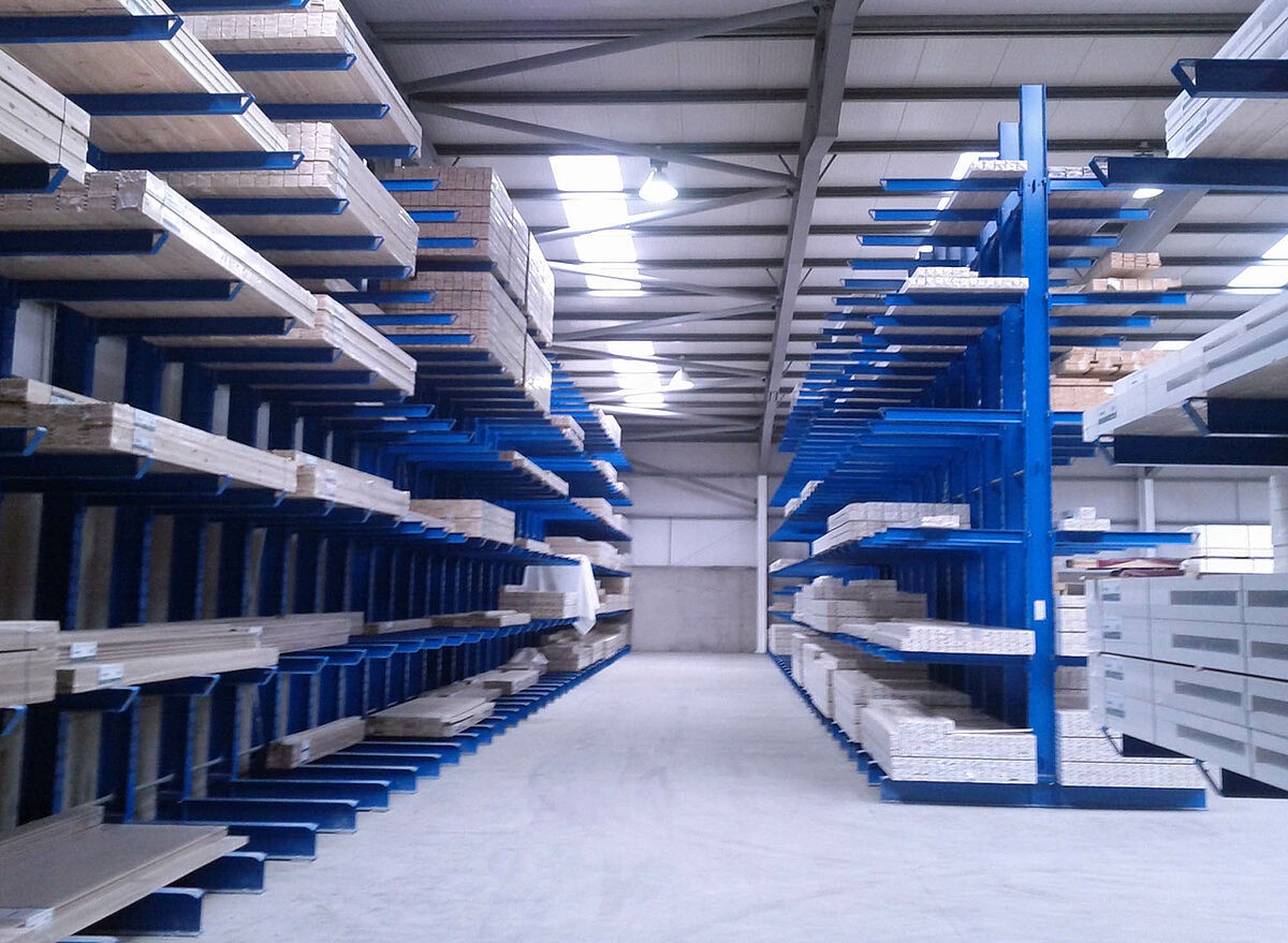 A empresa familiar irlandesa Agnew & Co com um armazém de estante com braço portador da empresa OHRA pôde economizar significativamente tanto em superfícies de armazenamento, como também em tempo de trabalho para a preparação da entrega. Graças a planta com um total de 200 metros de comprimento com estantes de 6 metros de altura e 1,20 metros de profundidade é possível o armazenamento sistemático das madeiras perfiladas de alta qualidade fabricadas pela empresa Agnew.