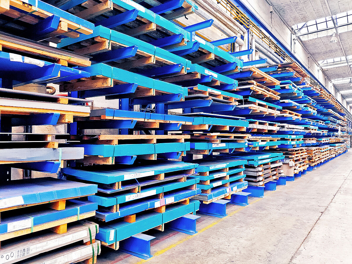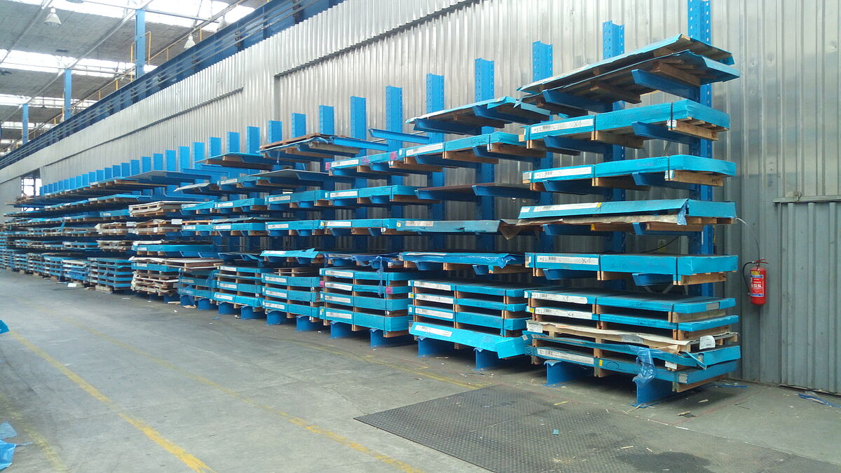 Na qualidade de retalhista e grossista de produtos semiacabados em aço inox, a AK 1324 armazena uma grande variedade de diferentes chapas, tubos e perfis. As estantes de cantilever da OHRA tornam possível armazenar as diferentes variantes das chapas metálicas claramente separadas umas das outras. As chapas com até 3 metros de comprimento são armazenadas em paletes, as embalagens podem pesar até 2,5 toneladas. Graças às estantes cantilever, cada lote individual pode agora ser armazenado e recuperado sem ter de mover outros lotes de chapas. Deste modo, foi possível acelerar consideravelmente o acesso. Ao mesmo tempo que se reduzem os danos, que costumavam ocorrer repetidamente durante o manuseio incómodo dos lotes de chapa metálica no sistema de armazenamento em bloco.