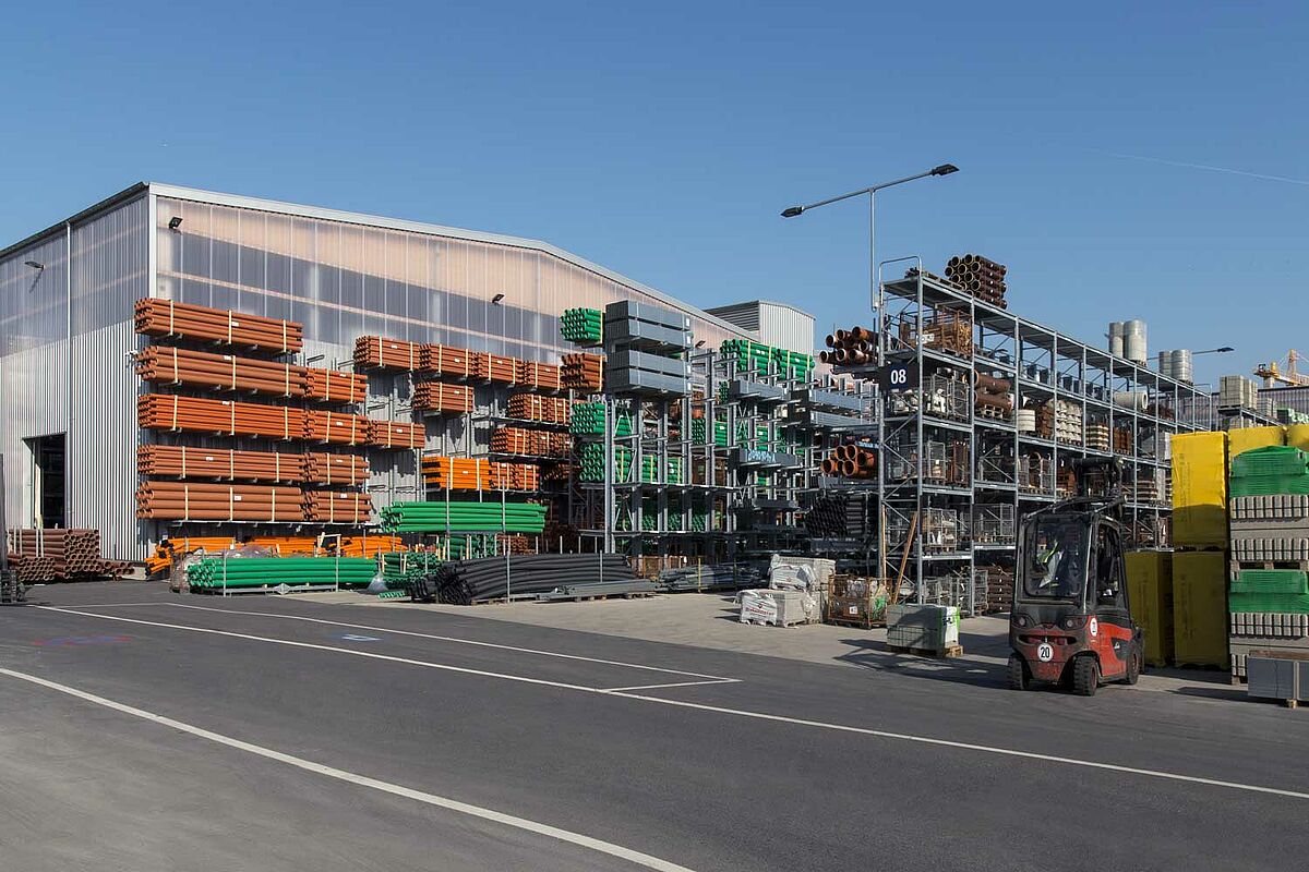 Para os seus clientes empresariais, a Beinbrech conta com uma área de negócio e de armazenamento de aproximadamente 100.000 metros quadrados e um conceito de logística eficiente, como um dos grossistas mais fortes da região na área da madeira e dos materiais de construção. De forma a manter este estatuto, a empresa decide reestruturar toda a área das instalações da empresa: As áreas de vendas, de exposição e de armazenamento foram ampliadas, o atendimento ao cliente otimizado, as zonas de carga unidas e as áreas de carregamento expandidas.