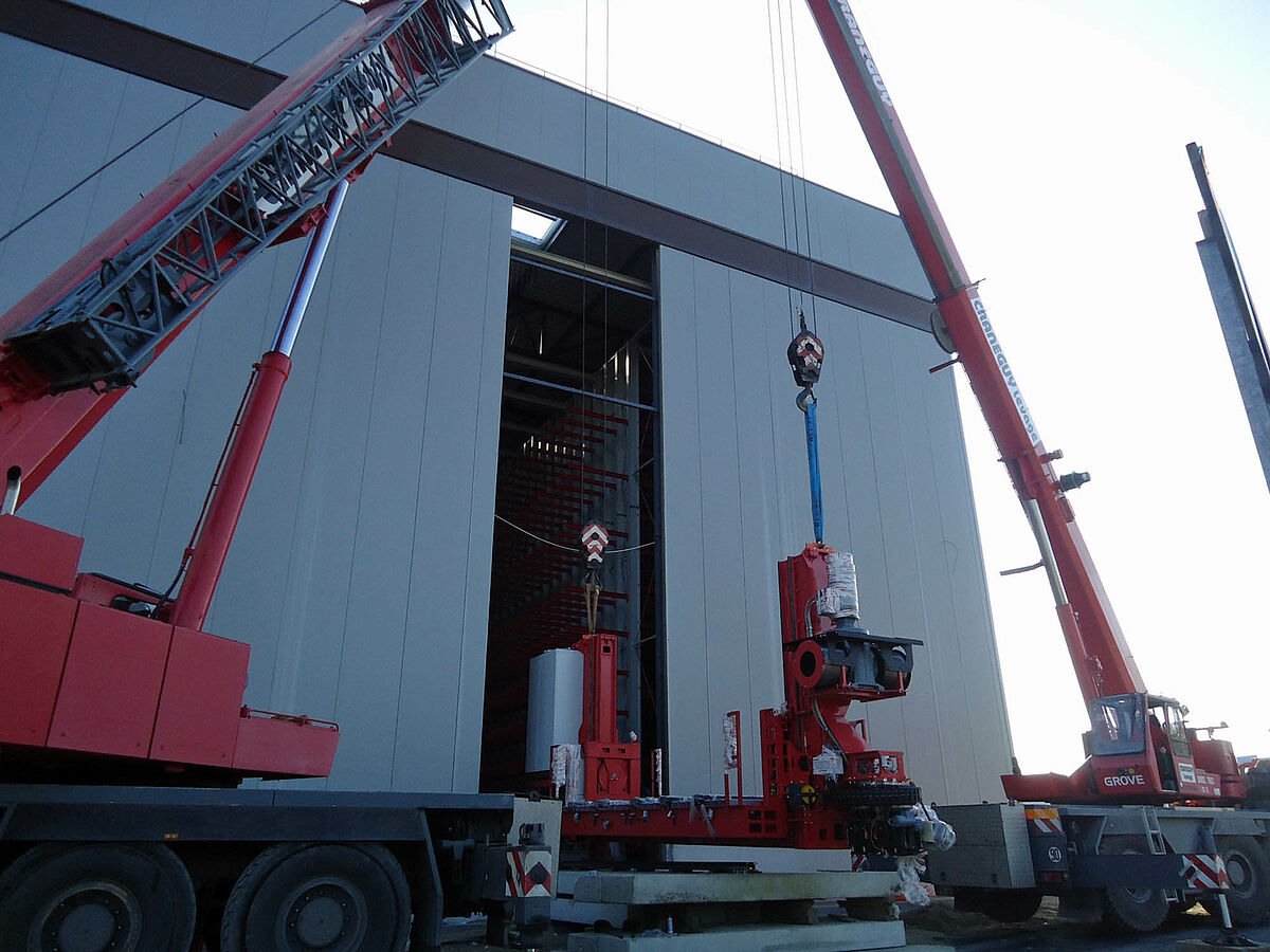 A construção do prédio de 20 metros de altura iniciou em Junho de 2011, a estrutura fundamental com revestimento do chão e do prédio e o telhado foram terminados no final de 2012. A montagem dos elementos das estantes de mais de 900 toneladas foi iniciada em Janeiro de 2012 e foi completada após quatro meses. Em Fevereiro de 2012 foi instalado o primeiro transtocador e em abril foi colocado em funcionamento.