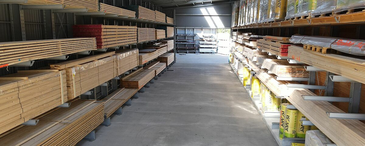 "Os nossos clientes também esperam que cada vez mais materiais de construção sejam armazenados protegidos das intempéries", remata Thomas Walter. Isto é possível, entre outras coisas, através dos pavilhões de estantes que a OHRA construiu em ambas as instalações da empresa. As estantes em consola também servem de estrutura de suporte para o teto e as paredes - isto é mais barato e mais rápido do que construir um pavilhão separado no qual as estantes são colocadas posteriormente. Além disso, a OHRA instalou estantes adicionais na área exterior com um telhado integrado. A OHRA também forneceu a análise estrutural e o planeamento necessários para a autorização, para que o processo pudesse ser concluído rapidamente.