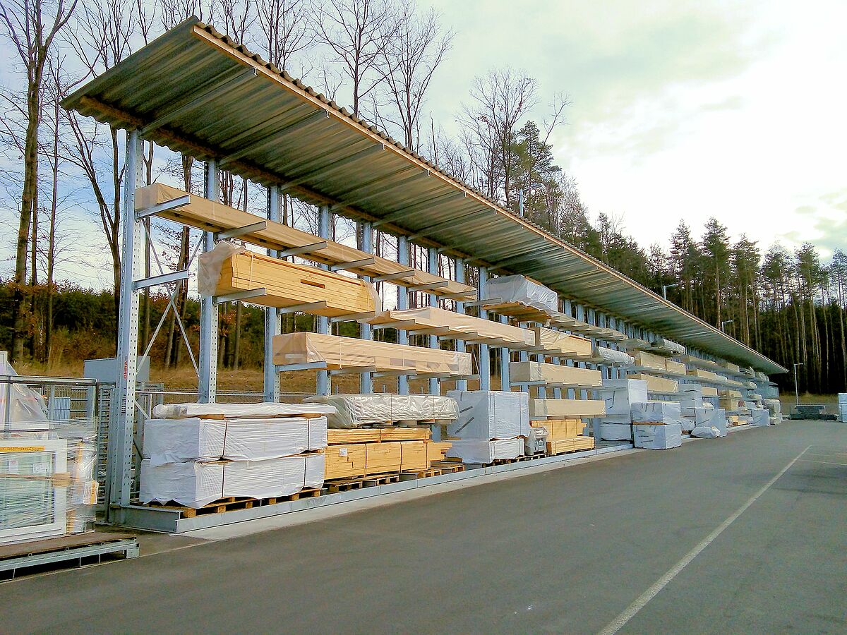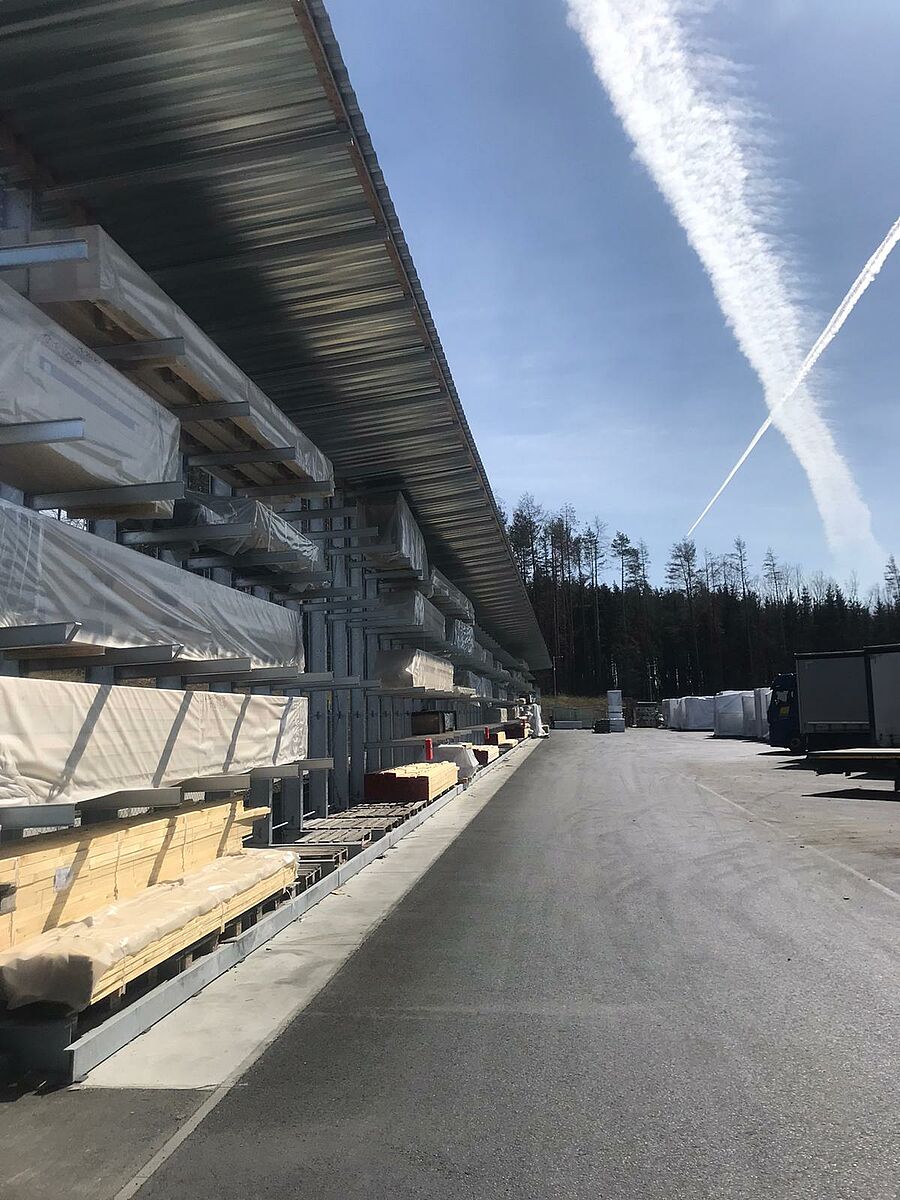 A DFH Haus CZ fabrica sobretudo casas pré-fabricadas da marca Okal - estas não são projetos de série, mas casas sustentáveis planeadas e executadas individualmente. As necessidades de armazenamento dos materiais necessários para a construção dos componentes pré-fabricados da casa são correspondentemente extensas. A fim de proporcionar capacidade de armazenamento suficiente para este fim, a empresa instalou as primeiras estantes cantilever na área externa em 2018. As estantes têm cerca de 6 metros de altura e oferecem até cinco níveis de armazenamento, cada um dos braços com 1200 milímetros de comprimento suporta um peso de até 1 tonelada.