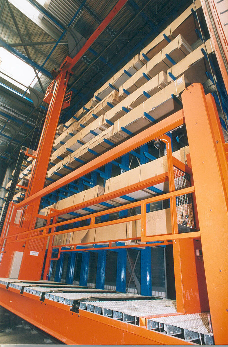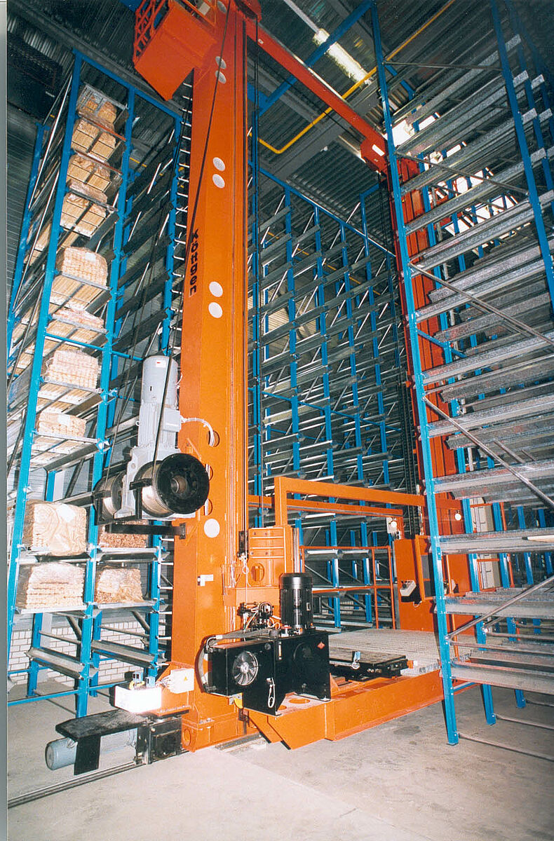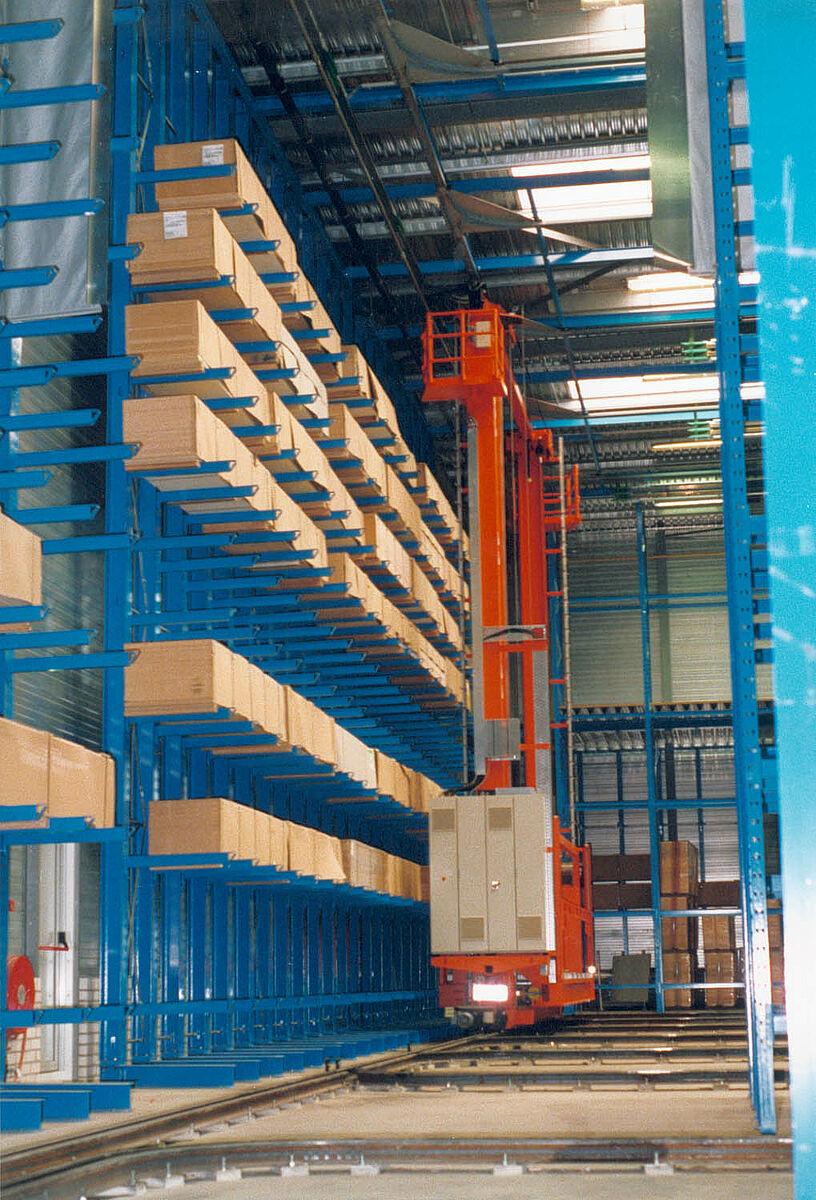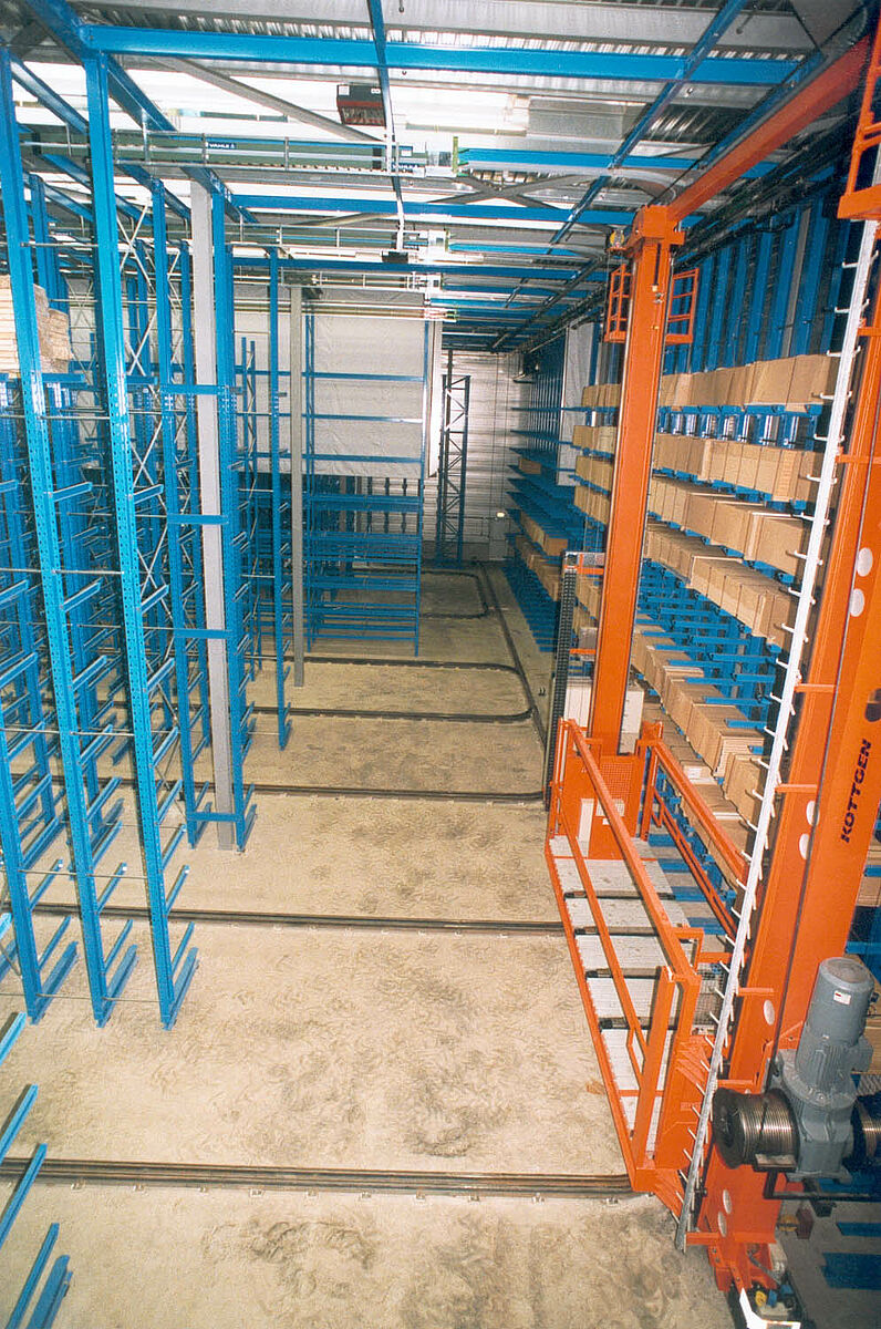 Os três RBGs selecionam automaticamente o nível de armazenamento correspondente com a ajuda de um sistema de administração computadorizado. A preparação dos pedidos é realizada manualmente por trabalhadores que conduzem os transelevadores. Dessa forma, é possível preparar até quatro pedidos ao mesmo tempo.