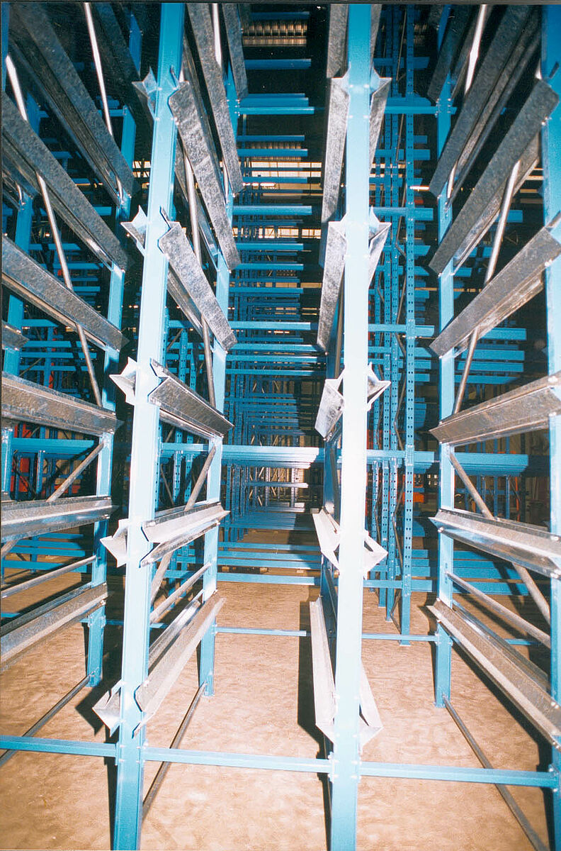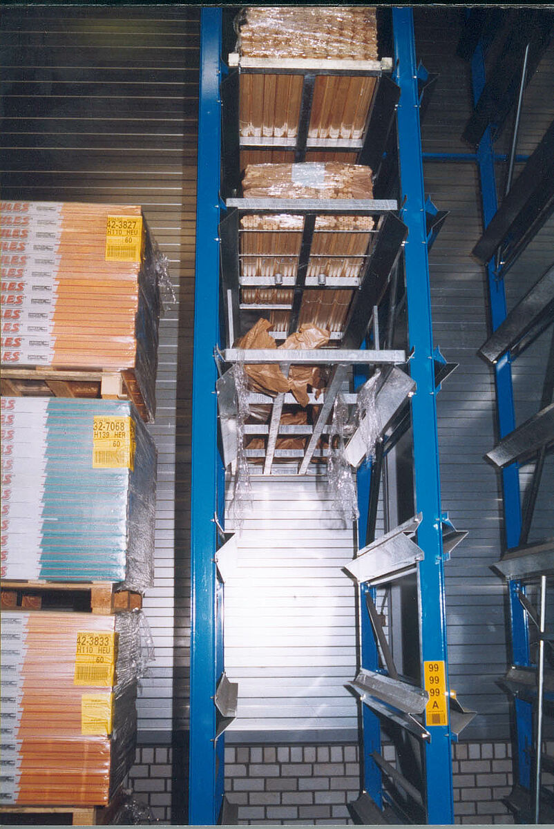Antes da inauguração do novo sistema fornecido, tal cliente armazenou e encomendou o produto em sete armazéns diferentes. 14 funcionários foram envolvidos somente para armazenar e delegar pedidos. Empilhadeiras foram utilizadas como meio auxiliar.