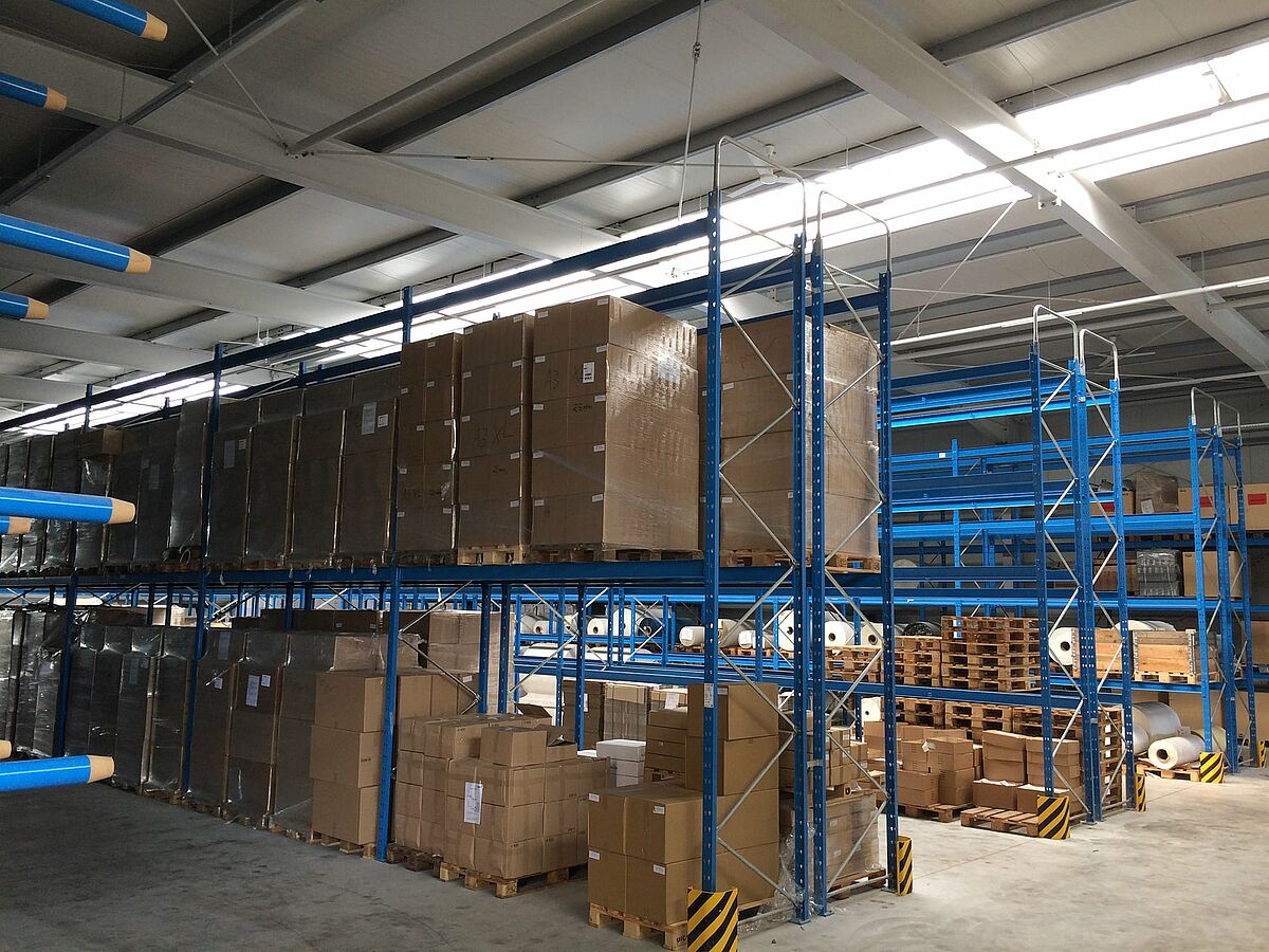 Para sempre, a segurança das estantes da OHRA também foi um argumento importante: Especialmente ao manusear contentores pesados e rolos de papel com empilhadoras e porta-paletes elétricos, os suportes das estantes podem ter colisões. Mas, nesse caso, o aço laminado a quente das estantes OHRA cede elasticamente e também mantém suas vantagens em relação à alta capacidade de carga vertical, mesmo com um impato. Como hoje há menos danos nas estantes da Forever, a empresa também beneficia de uma maior segurança de estoque.