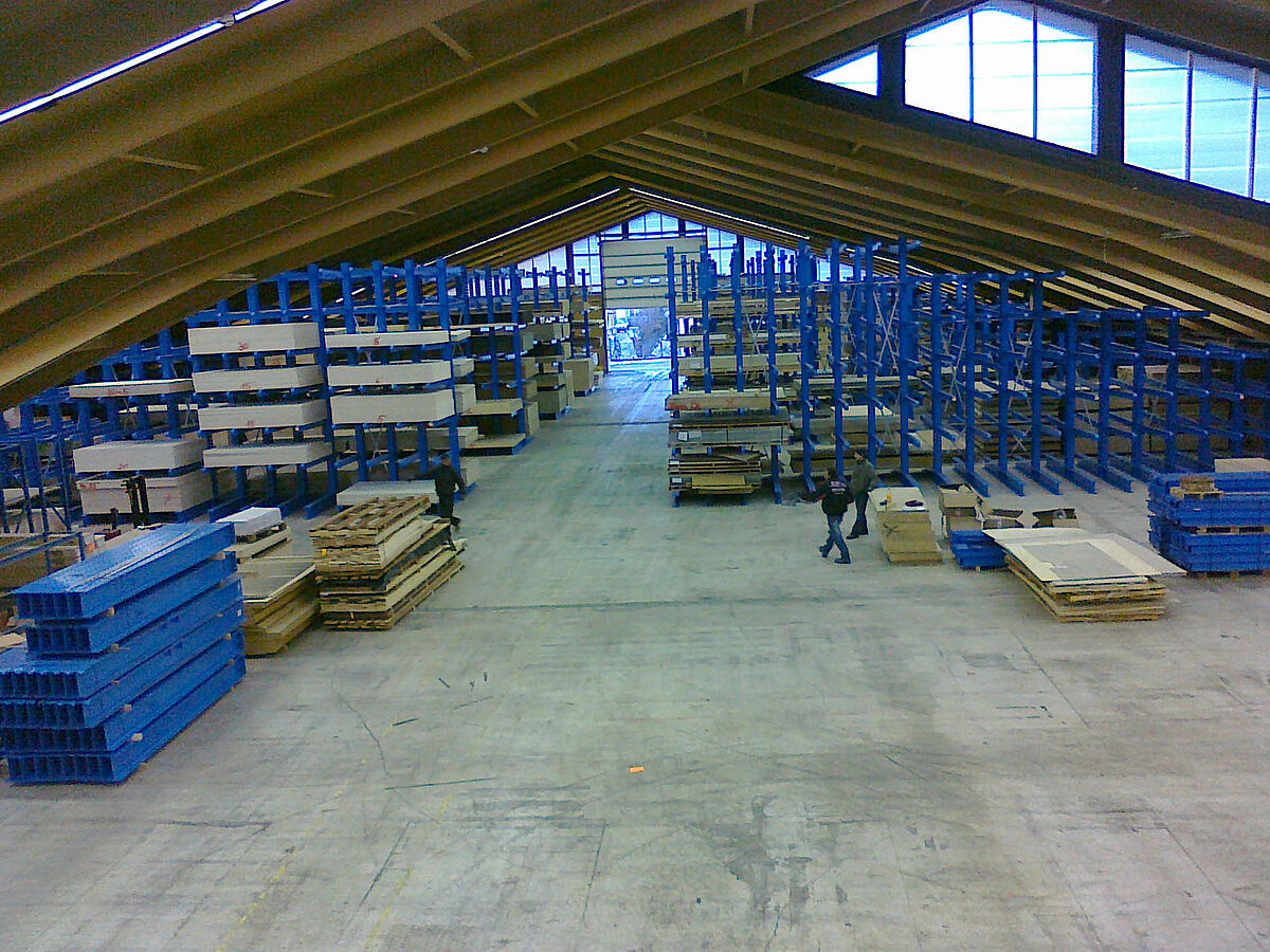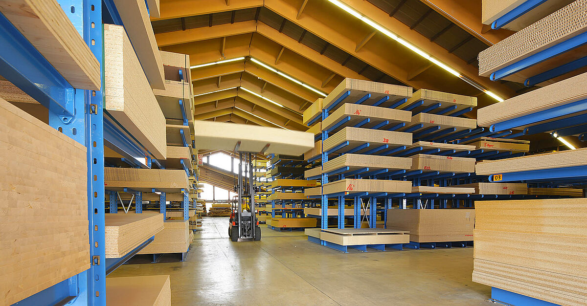 No novo centro de distribuição da Gitsche são armazenados folheados de madeira, madeira e materiais para painéis nas medidas de 250 x 125 até 560 x 210 centímetros. Na sede da empresa já tinham sido substituídos antes os sistemas existentes de estantes pelas estantes com braços portadores da OHRA. Convencida da elevada qualidade das estantes fabricadas em aços termolaminados normatizados, a empresa madeireira equipou também o novo centro de distribuição com estantes da OHRA.