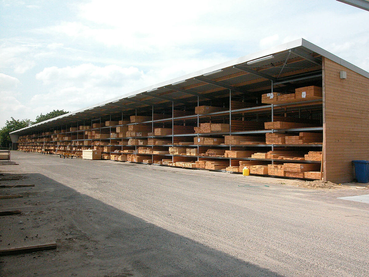 O depósito de madeira construído pela própria empresa na área externa atingiu o seu limite com os seus dois níveis. Mesmo os clientes von Gooskens racionalizam o seus processos e minimizam os stocks em armazém. Respectivamnte são necessárias mais capacidades nos fornecedores de madeira para garantir uma entrega mais rápida e segura. Por isso, Gooskens decidiu construir um novo depósito. A particularidade nisso: O depósito deveria ser desenhado como unidade de estantes de barra, ou seja, as vigas e sarrafos de madeira são "encaixados" longitudinalmente nos compartimentos de 6.500 milímetros de profundidade. Isso permite um melhor controlo geral dos tipos de perfis armazenados e uma preparação manual para a entrega mais rápida.