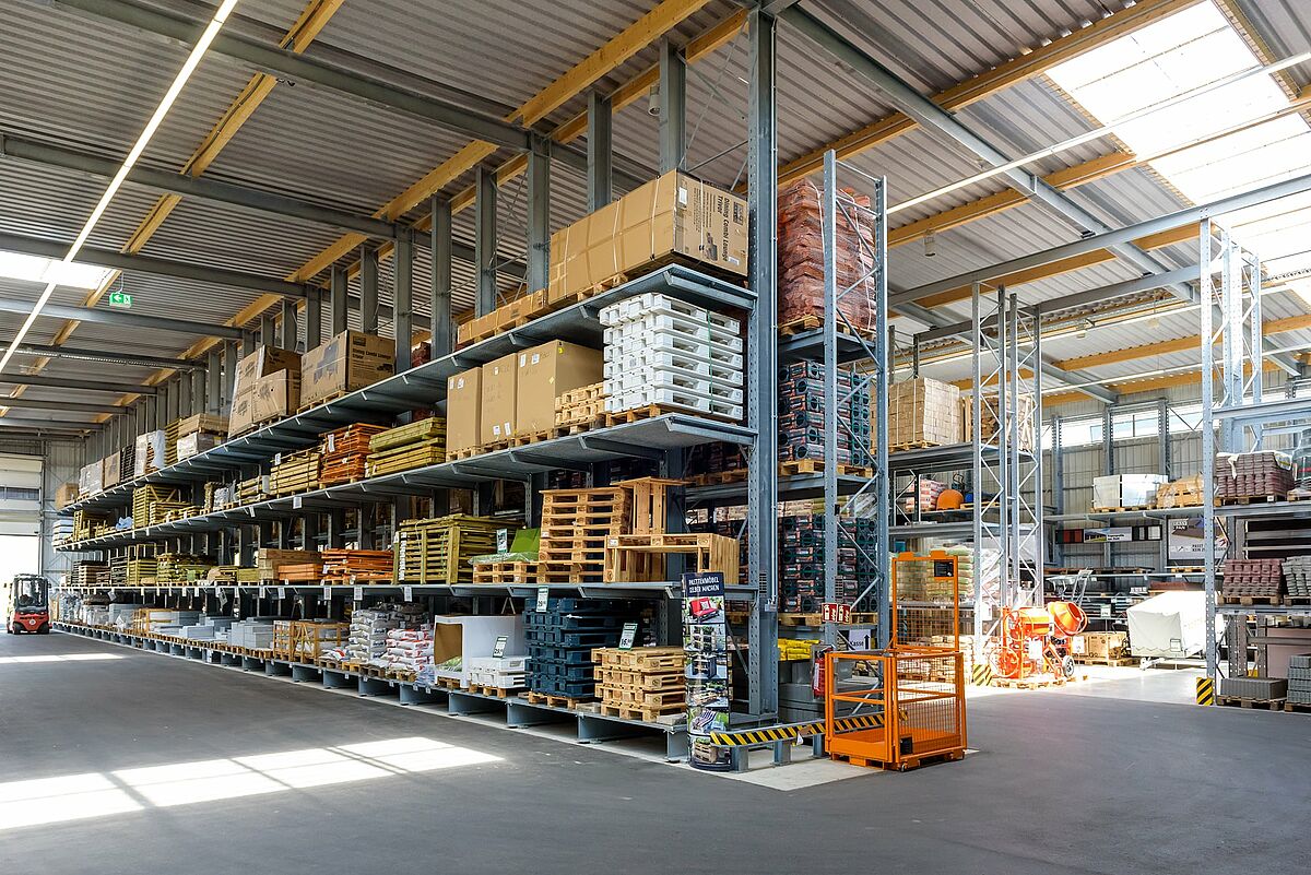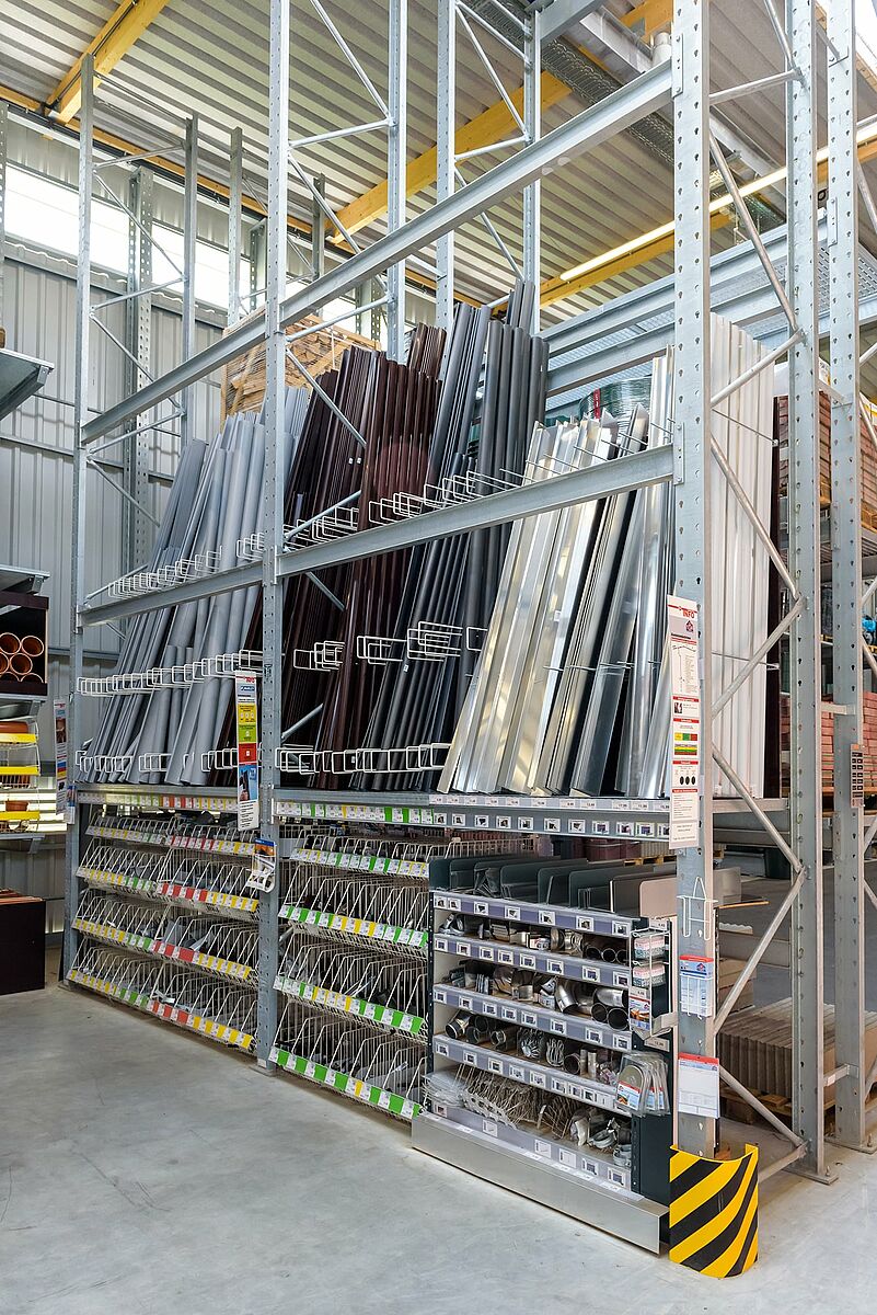 A Jos. A Schneider GmbH construiu um armazém autoportante para artigos de jardim e madeira com estantes cantilever e de paletisação da OHRA na sua nova loja de bricolage em Dorfen, na Baviera, onde os clientes podem buscar os artigos de jardim e madeira diretamente com. A OHRA projetou a construção do armazém em estantes: Os suportes de prateleiras também servem como subestrutura de suporte de carga para a construção do armazém. Isso reduz o tempo do projeto e oferece consideráveis vantagens de custo.