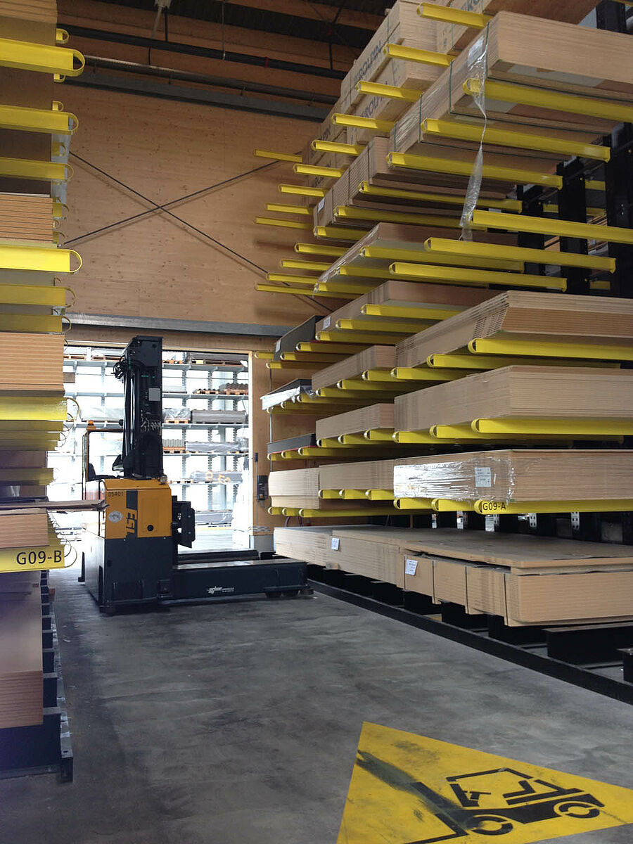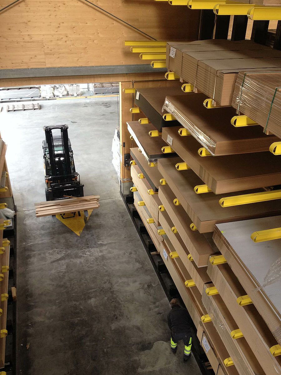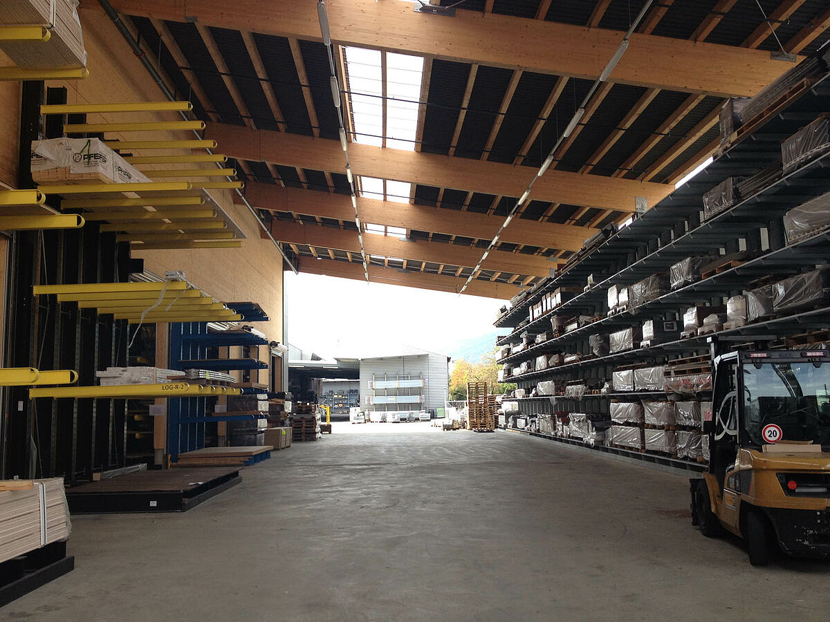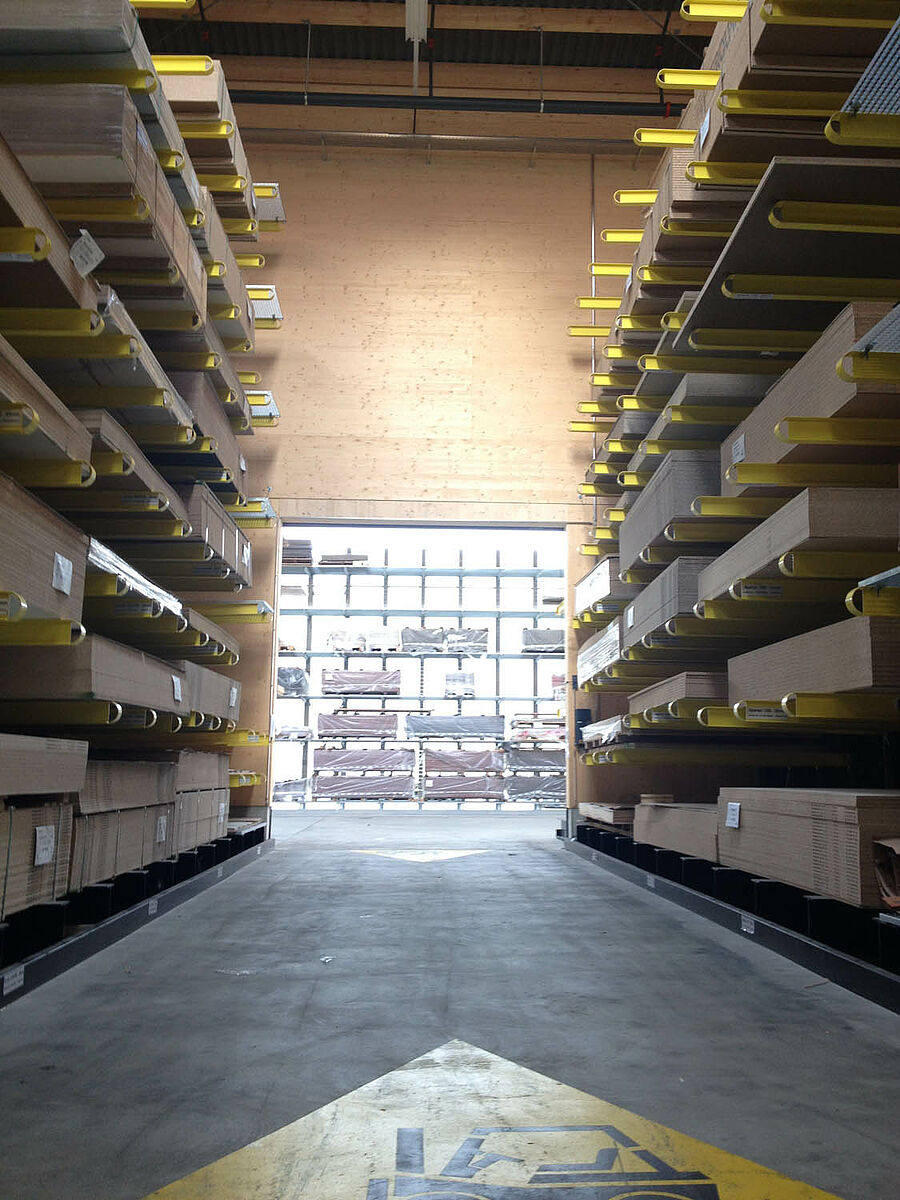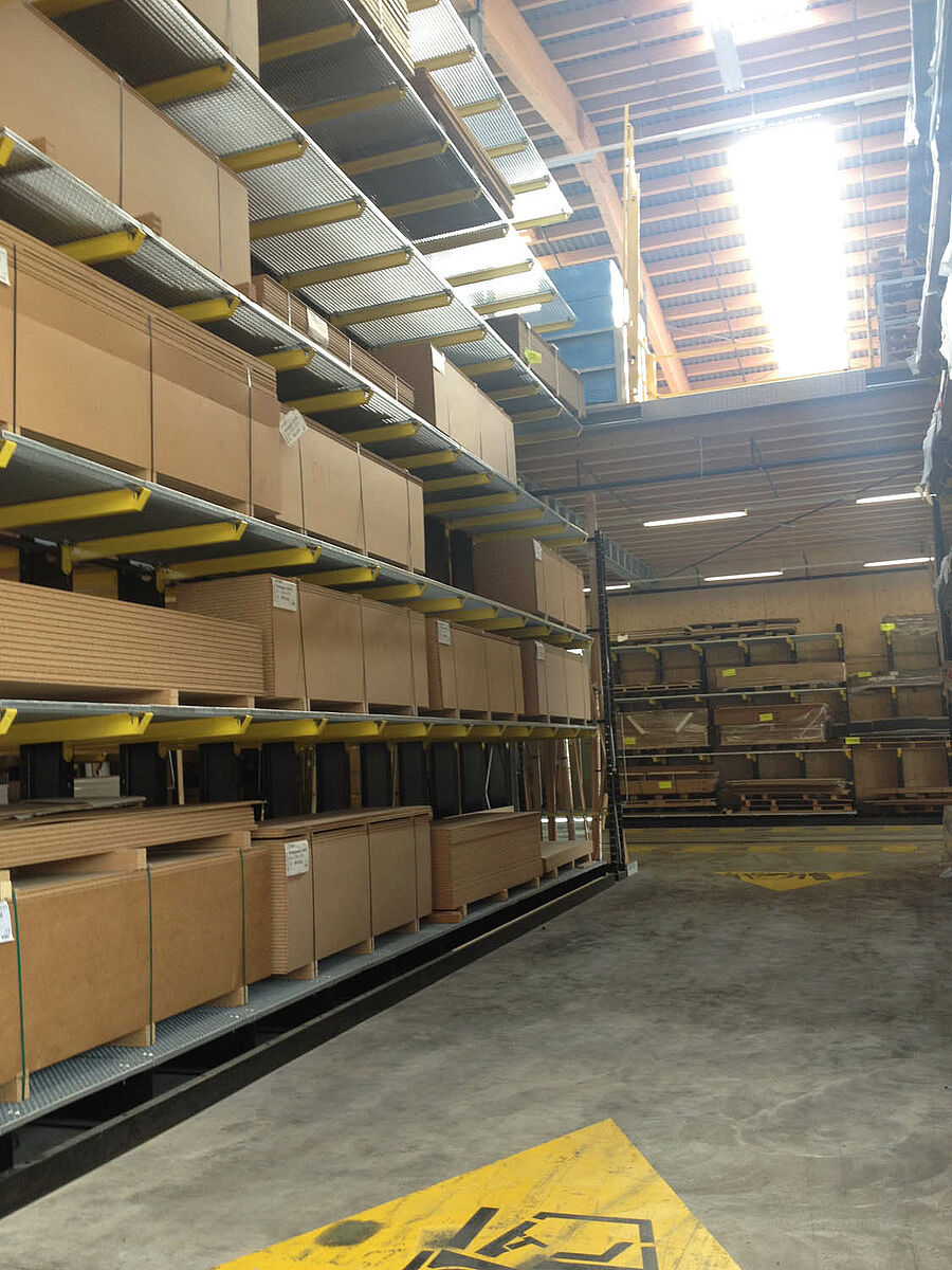 O depósito em Biel está dividido em duas zonas drive-thru sobre aproximadamente 3000 metros quadrados. Na planta a OHRA montou quase 600 metros contínuos de estantes com braços portadores de 9 metros de altura, sete níveis de armazenamento e braços portadores com 2,5 metros de profundidade que são operados por empilhadeiras de quatro vias. Estantes verticais no final das fileiras de estantes também permitem um armazenamento claro de sarrafos, perfis e tubos. Na área externa as estantes para paletes e as estantes com braços portadores no modelo galvanizado em quente oferecem espaço para mais 600 paletes. Para o armazenamento de materiais isolantes está integrada uma plataforma de 1000 metros quadrados na construção da planta.