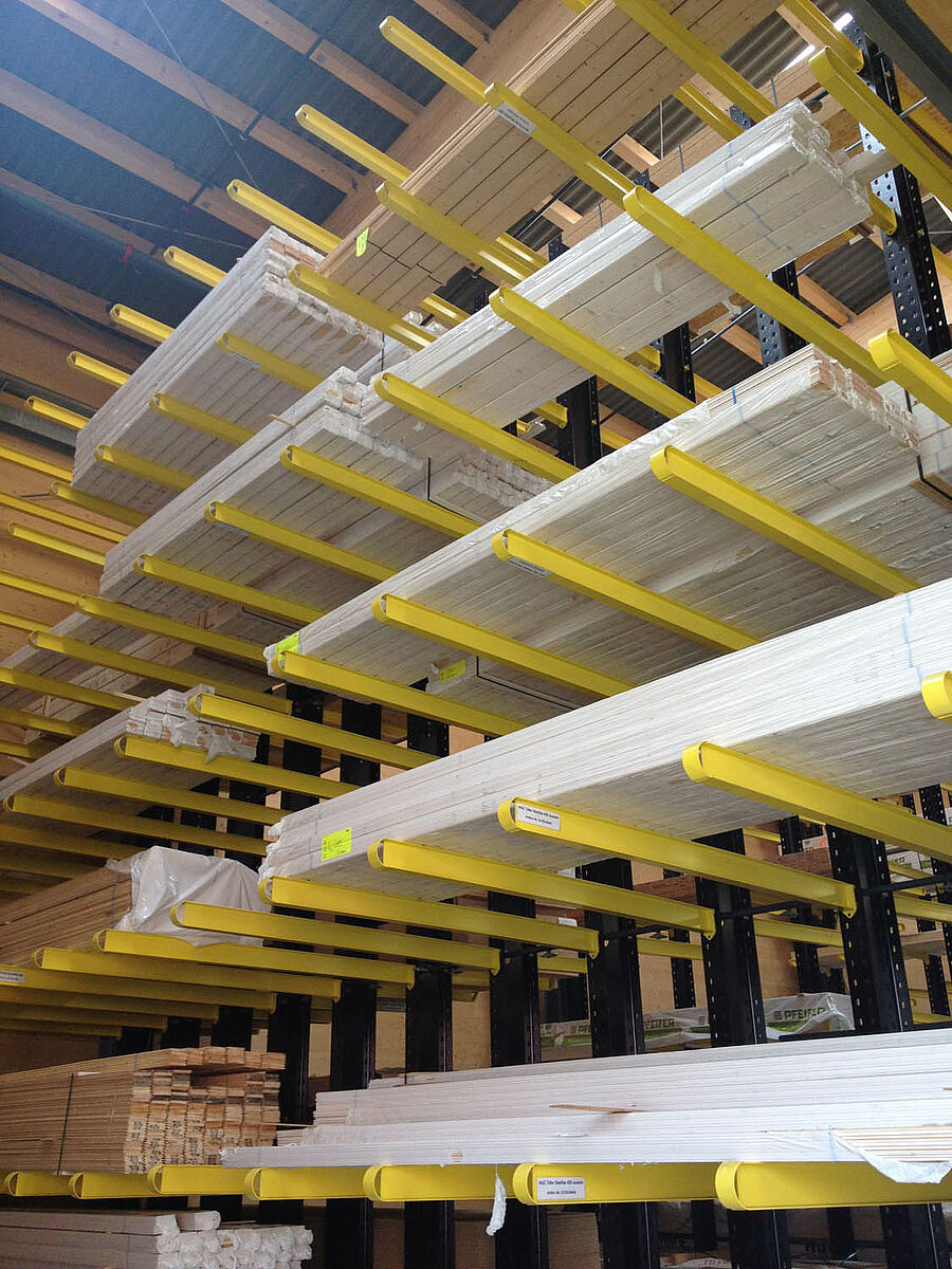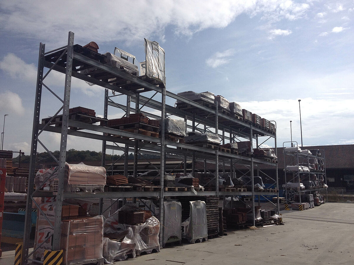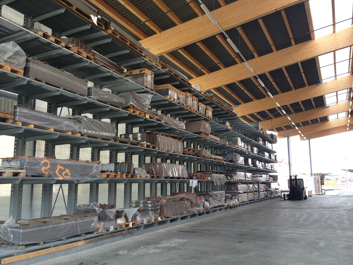 A HG COMMERCIALE, uma das empresas líderes do comércio da construção suíça, ampliou o seu novo local de vendas em Biel com sistemas de estantes da OHRA. Uma combinação feita à medida de estantes com braços portadores, estantes para paletes e estantes verticais oferece espaço para uma ampla gama de materiais para a construção. O depósito coberto foi concebido como depósito drive-thru, os clientes atravessam o depósito numa direcção e recebem a mercadoria directamente das diferentes estantes.