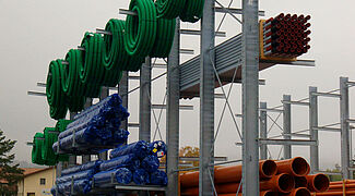O depósito em Cortaillod está dividido em um depósito externo, bem como em um depósito interno. No pavilhão a OHRA montou ao redor de 60 metros contínuos de estantes com braços portadores de seis níveis, assim como estantes para paletes com espaço para 1200 paletes. O nível de depósito superior das estantes para paletes encontra-se a uma altura de 7,1 metros. A estante para paletes na área externa oferece espaço para outras 600 paletes. Para o armazenamento de mercadoria longa no depósito externo estão montados adicionalmente 60 metros contínuos de estantes com braços portadores. Estantes verticais também permitem um armazenamento claro de sarrafos, perfis e tubos.