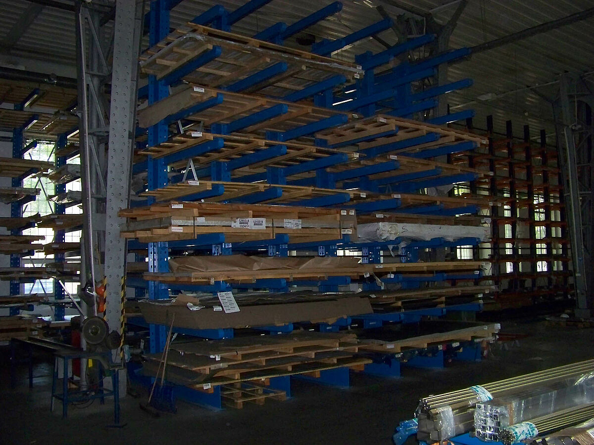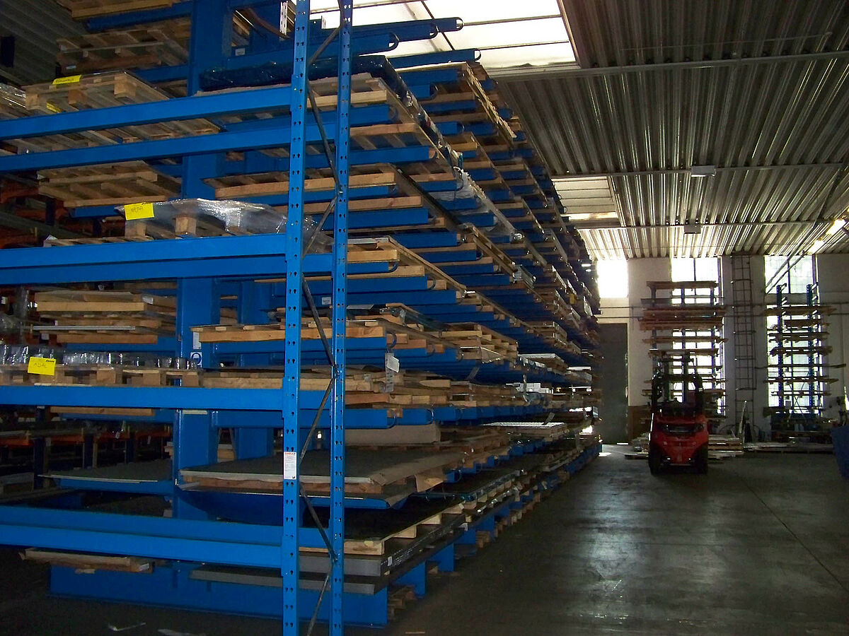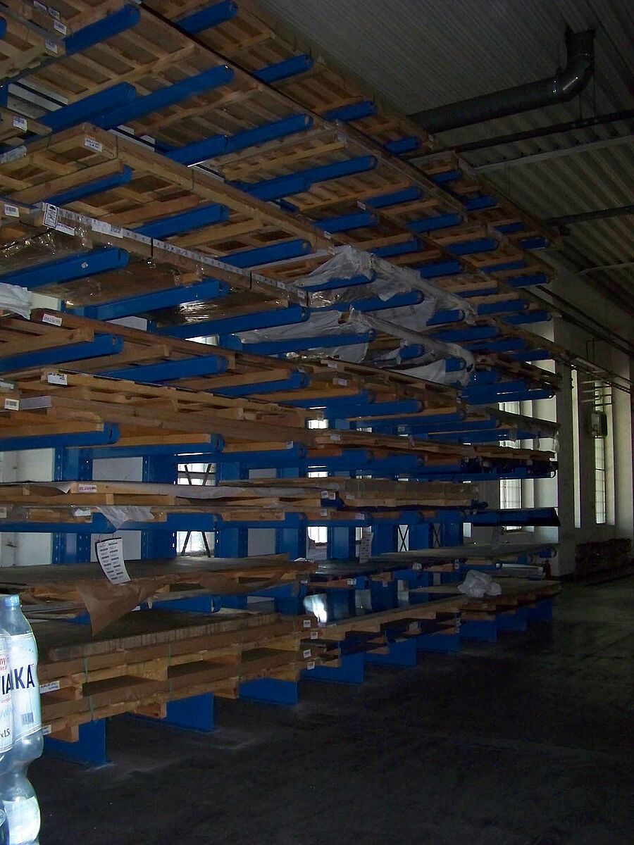 Para estar sempre perto do cliente, Investa está continuamente a expandir a sua rede de filiais na Polônia. Para o armazenamento de chapas com comprimento de até 3.000 mm e largura de 1.500 mm, assim como para os perfis e tubos com comprimento de até 6.000 mm a Investa utiliza estantes com braços portadores e para paletes da empresa OHRA. Característicos da empresa OHRA são os braços portadores das estantes que estão engatados no suporte vertical. Eles permanecem flexíveis e móveis mesmo com carga elevada e desviam choques, por exemplo, da empilhadeira. Desta forma nem o braço portador e nem a mercadoria são danificados. Para os sistemas de estantes a empresa OHRA utiliza exclusivamente aço termolaminado de primeira qualidade que ao colidir cede elasticamente, porém mantém a sua elevada capacidade de carga vertical. Os suportes da estante estão perfurados com ranhuras de 100 mm e assim podem ser adaptados às condições do armazém. Para mudar de lugar os braços portadores não são necessárias ferramentas.
