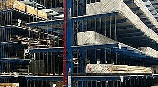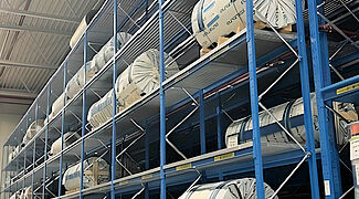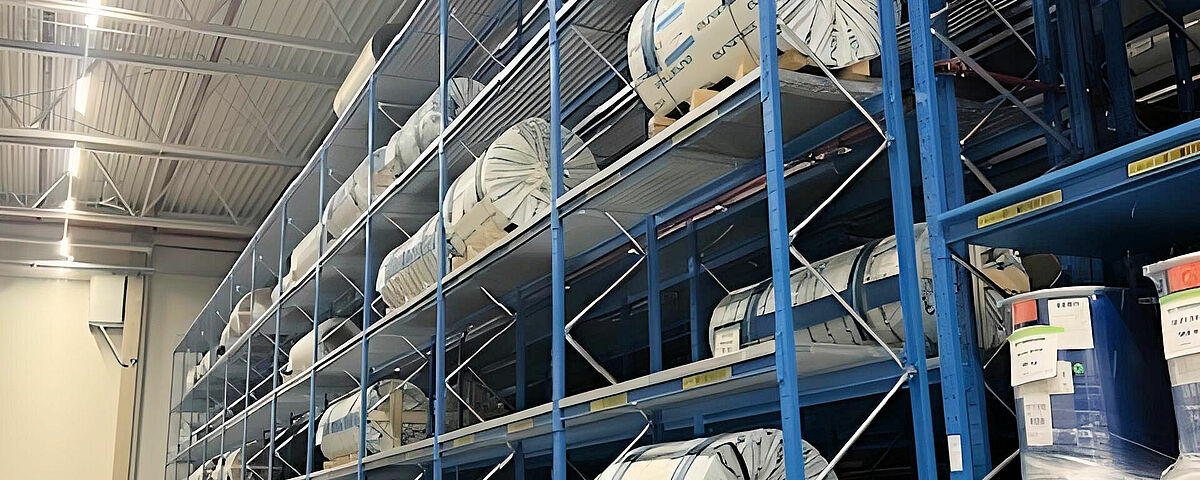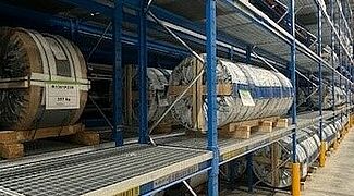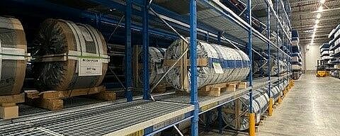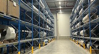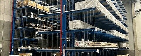 A combinação de estantes cantiléver e porta-paletes permite o armazenamento de materiais tão diversos como colas, bobinas de alumínio e PRFV, embalagens de contraplacado, pavimentos em PVC ou ripas de madeira e espuma de poliuretano. Uma vantagem das estantes da OHRA, construídas a partir de perfis de aço laminados a quente, é a sua elevada capacidade de carga: Na Knaus Tabbert, por exemplo, as estantes cantiléver suportam até 12 toneladas por montante e a capacidade de carga de um único cantiléver é de até 1000 quilogramas. mesmo no nível mais alto de armazenamento, a uma altura de 7,5 metros. As bobinas de GRP com um peso até 1,2 toneladas e as bobinas de chapa metálica com um peso até 1,8 toneladas são armazenadas em porta-paletes. Os fundos em rede permitem um armazenamento flexível, independentemente do formato dos auxiliares de carregamento das bobinas. Também nas estantes cantiléver, os fundos em rede asseguram, por vezes, o armazenamento de uma grande variedade de contentores e suportes de carga.