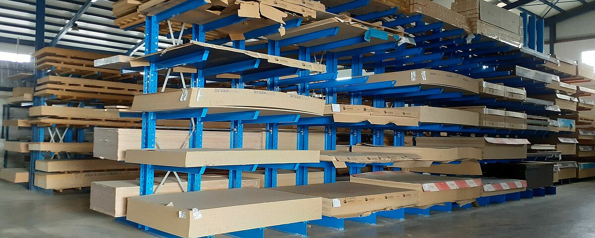Com o novo sistema de estantes, a OHRA conseguiu um elevado aproveitamento do espaço, principalmente devido ao fato de uma fila de estantes ter sido especialmente adaptada ao número e dimensões das paletes de madeira armazenadas na Maderas Fanega: isto porque a empresa também armazena placas de 2850 por 2100 milímetros, além de paletes de 2440 por 1220 milímetros. Equipar todas as estantes com braços de cantilever correspondentemente longos teria ocupado demasiado espaço, especialmente porque a gama de artigos destas dimensões é limitada. Assim, a OHRA equipou apenas um lado de uma fileira de estantes com cantilevers de 1850 milímetros de comprimento, mas o outro lado com cantilevers de apenas 1200 milímetros de comprimento. Para garantir a estabilidade da estante apesar desta assimetria, as colunas foram sobredimensionadas em conformidade.