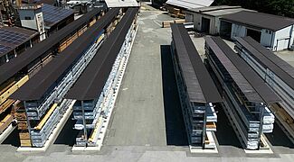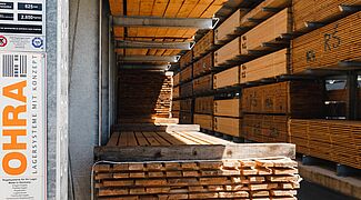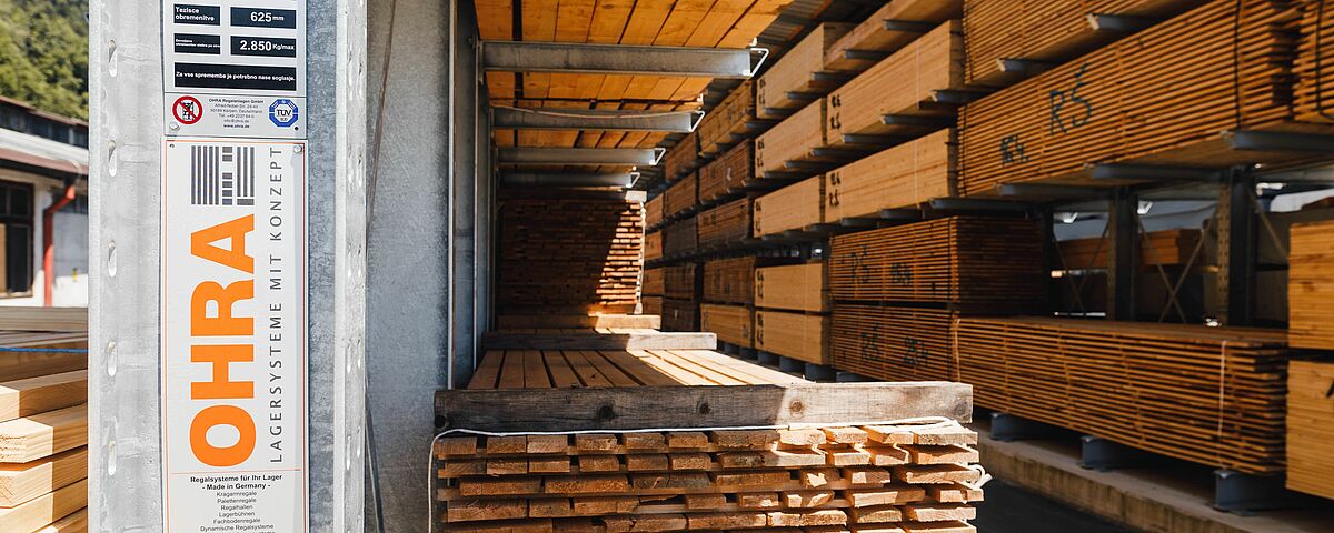 A empresa eslovena Marles, fabricante de casas pré-fabricadas, instalou cerca de 442 metros de estantes cantiléver da OHRA para o exterior, para poder abastecer a sua produção de madeira de construção de forma fiável. Em comparação com o armazenamento anterior em blocos de betão, a empresa conseguiu aumentar significativamente a sua capacidade de armazenamento e simplificar consideravelmente o manuseamento de vigas até 13 metros de comprimento. A localização no coração do Bachergebirge (Pohorje em esloveno) colocou desafios acrescidos: Inclinações de três por cento em alguns locais, grandes quantidades de neve e ventos fortes tiveram de ser tidos em conta no planeamento do sistema de estantes.