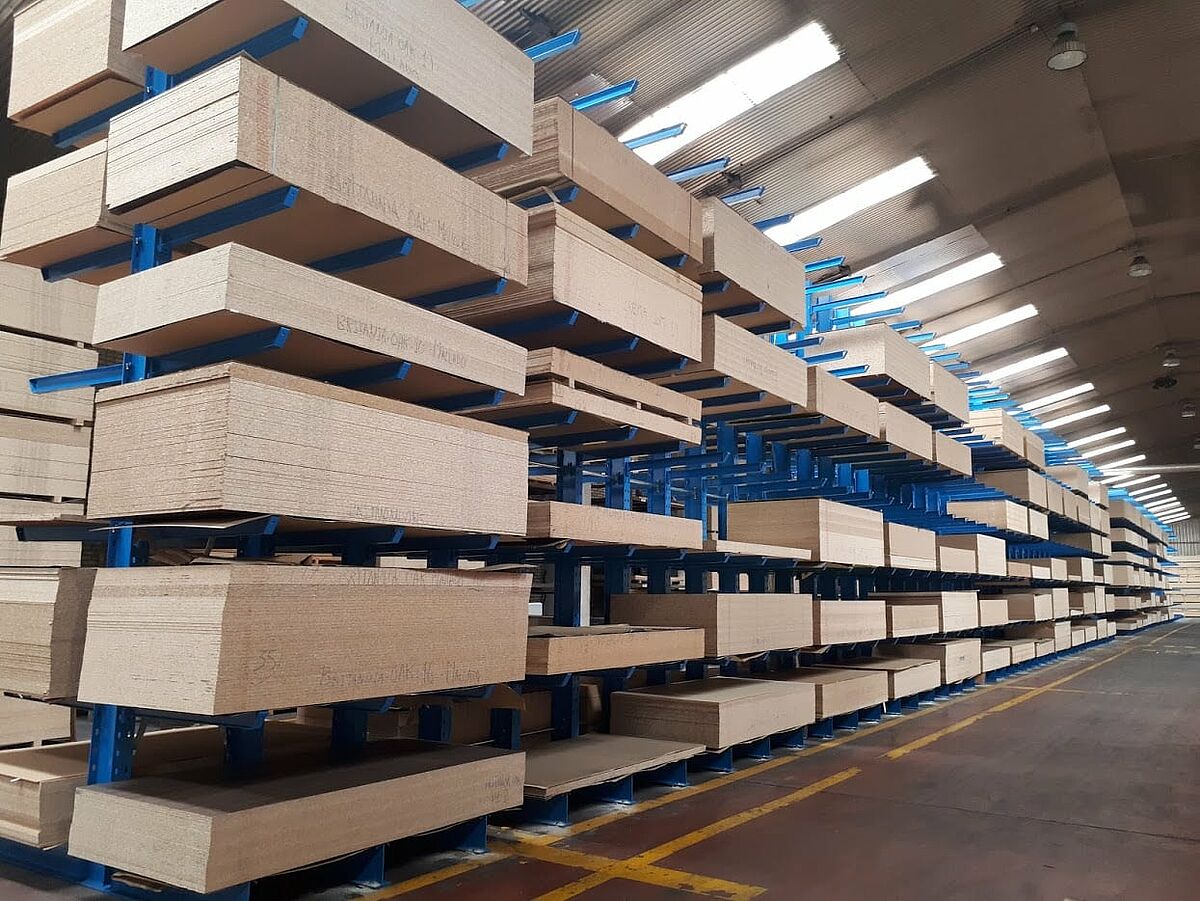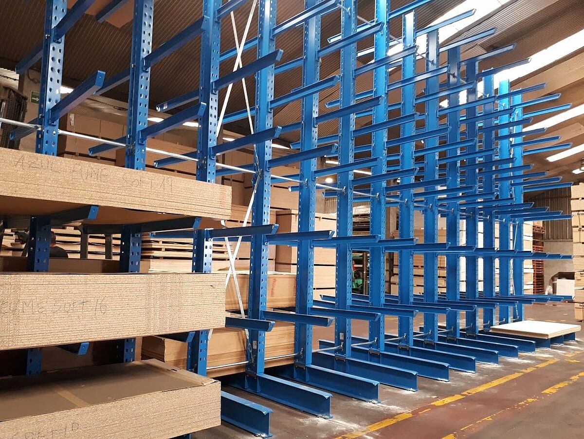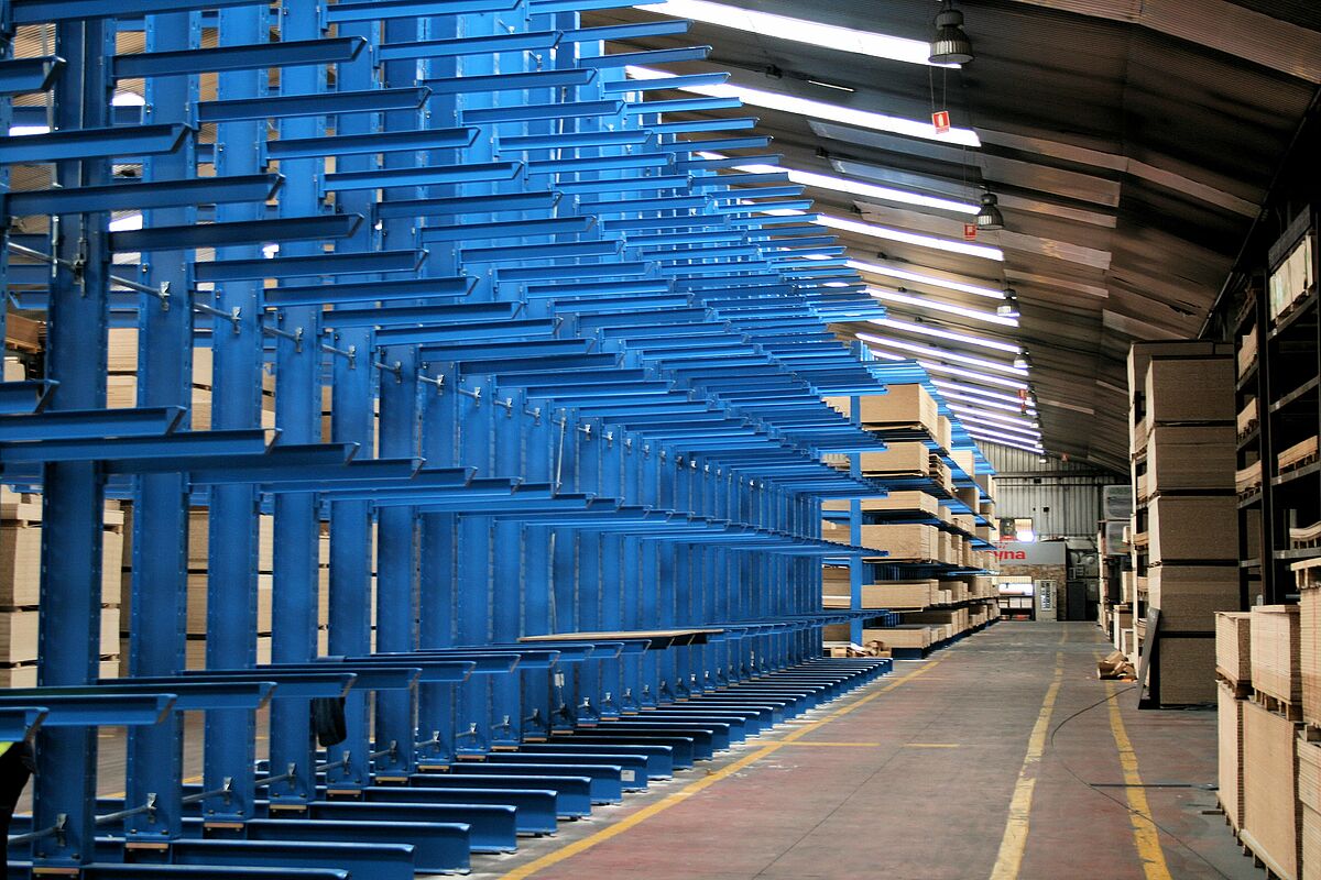 Para manter o sortimento crescente disponível para entrega também no futuro, a Fabricados Reyna instalou duas linhas de 36,9 metros e uma linha de 45 metros de estantes cantiléver da OHRA. A OHRA, líder do mercado europeu em estantes cantiléver, alcançou uma alta capacidade de estantes e uma estrutura elegante especial por meio da utilização de perfis em aço com paredes sólidas para todos os elementos suportados. Isto permite um armazenamento compacto em pequena superfície de base. As estantes cantiléver com dois lados, recém-instaladas na Fabricados Reyna, têm uma capacidade de carga de 4.200 quilos por suporte e lado; cada um dos braços articulados e de altura ajustável suporta até 700 quilos em um comprimento de braço de 1.200 milímetros.