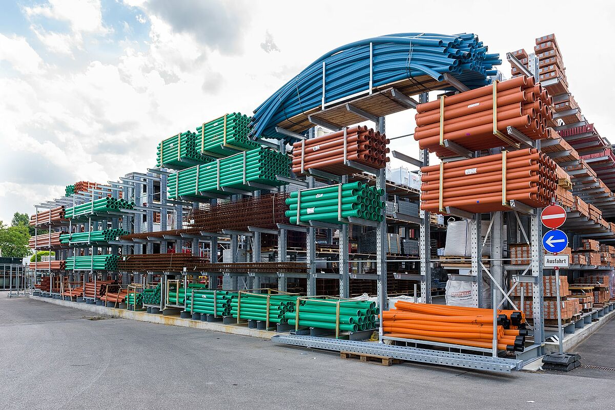 A Schönreiter, revendedor especializado em materiais de construção localizado em Essenbach bei Landshut ampliou a sua variedade de produtos com materiais brutos e para construção de edificações e madeiras. As capacidades de armazenamento necessárias para o efeito foram conseguidas pela empresa recorrendo a estantes com apoio extensível e estantes de paletização da OHRA, colocadas tanto no interior como no exterior. A combinação dos tipos de estantes permite um armazenamento muito flexível dos mais diversos materiais de construção. As estantes com mais de 7500 milímetros de altura permitem armazenar a mercadoria nova com grande economia de espaço.