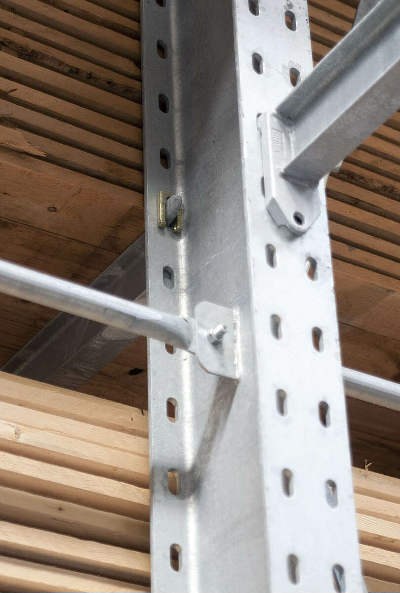 A empresa Schyns desde o início utilizou as estantes com braços portadores da empresa OHRA: o sistema convencia por um lado pela sua robustez, todos os elementos portadores são fabricados completamente em aço termolaminado. Assim os perfis respondem com elasticidade e mantêm suas propriedades estáticas, mesmo no caso que as condições de trabalho no depósito sejam extremadamente duras. Além disso, a construção estável possibilita alturas maiores de armazenamento. Na empresa Schyns o nível de armazenamento mais alto é de 6 metros. Por outro lado os braços portadores das estantes da OHRA não estão aparafusados nem soldados à coluna, mas estão enganchados. No caso de colisões com a empilhadeira ou com a mercadoria o braço pode se deslocar e evitar que o braço ou a mercadoria sejam danificados. As colunas das estantes contam com orifícios a cada 100 milímetros nos quais os braços portadores podem ser enganchados de forma flexível. Os braços podem ser deslocados sem ferramentas, de maneira que as estantes podem ser adaptadas rapidamente as novas condições.