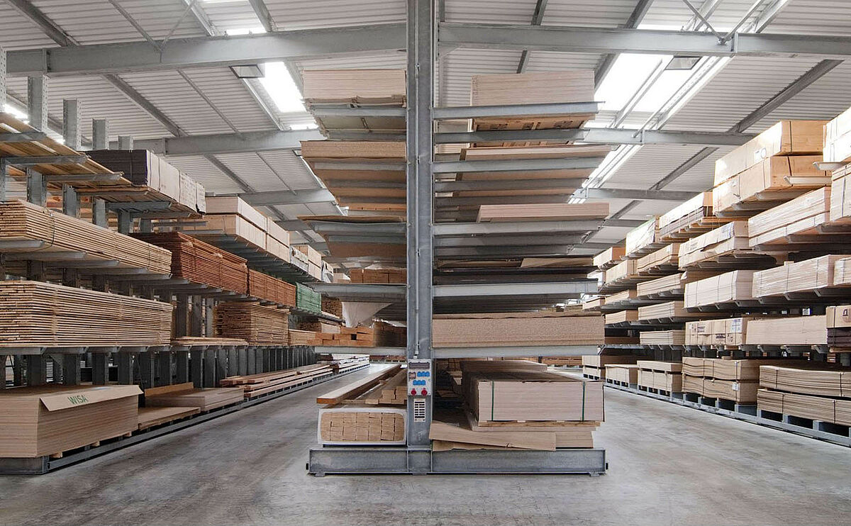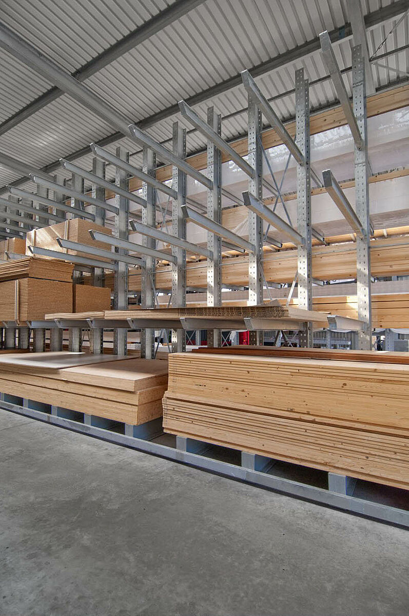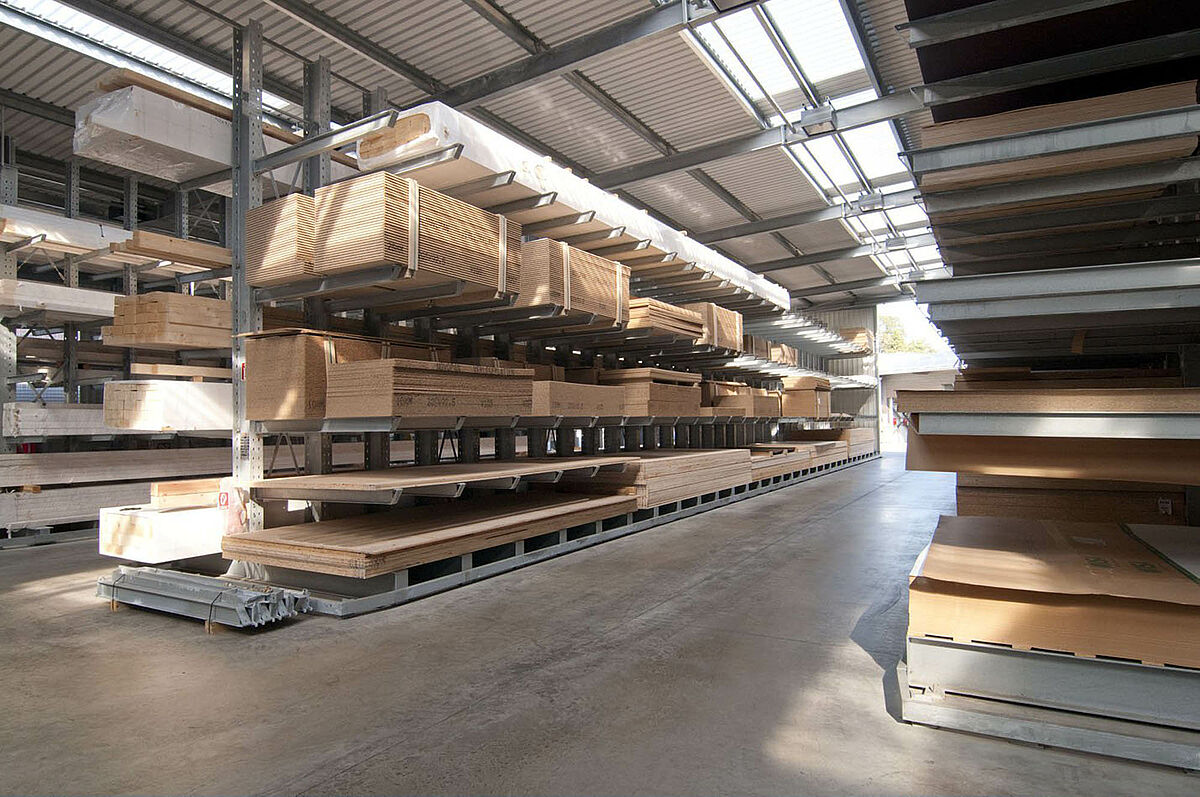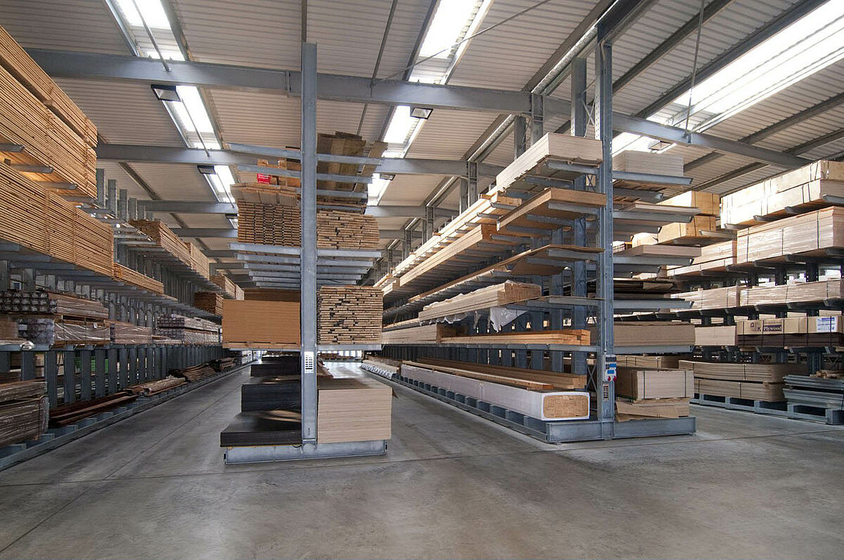 Depois de um grande incêndio a planta de armazenamento da empresa Schyns, uma das líderes no sector do comércio de madeira na região de Rhein Sieg, teve que ser reconstruída em muito pouco tempo. Para isso, a empresa Schyns usou sistemas de estantes da empresa OHRA. Os especialistas de Kerpen em estantes com braços portadores realizaram a nova construção da planta de 3385 metros quadrados como empreendimento geral. Desde a primeira planificação até a montagem, todas as fases da construção foram realizadas por uma única empresa, podendo assim concretizar o projecto em apenas sete meses.