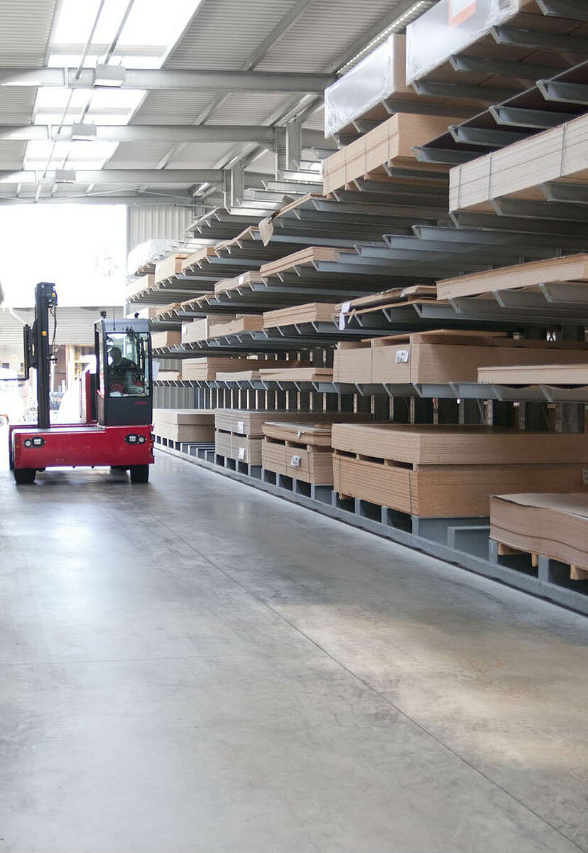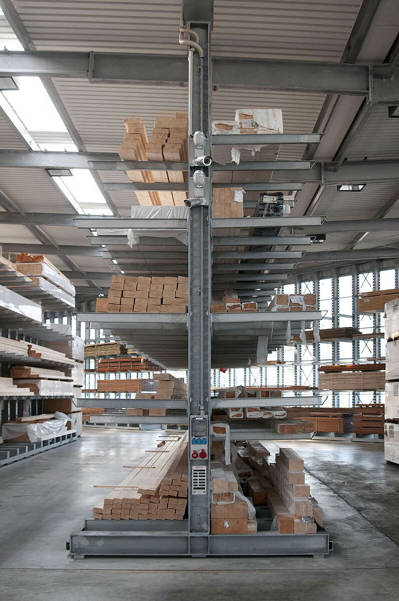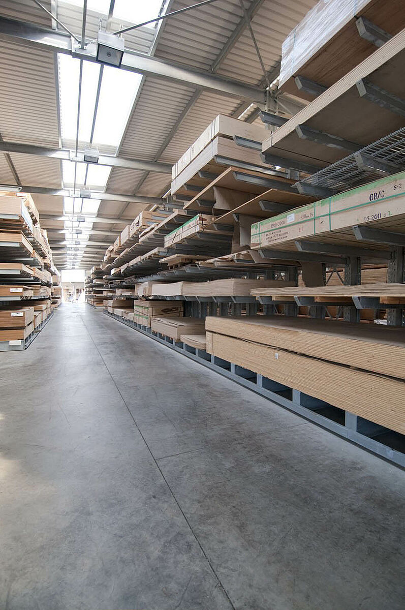 Depois de um grande incêndio a planta de armazenamento da empresa Schyns, uma das líderes no sector do comércio de madeira na região de Rhein Sieg, teve que ser reconstruída em muito pouco tempo. Para isso, a empresa Schyns usou sistemas de estantes da empresa OHRA. Os especialistas de Kerpen em estantes com braços portadores realizaram a nova construção da planta de 3385 metros quadrados como empreendimento geral. Desde a primeira planificação até a montagem, todas as fases da construção foram realizadas por uma única empresa, podendo assim concretizar o projecto em apenas sete meses.