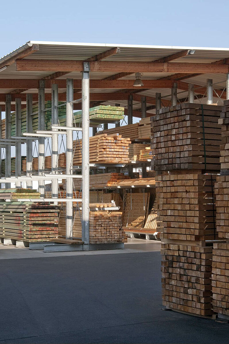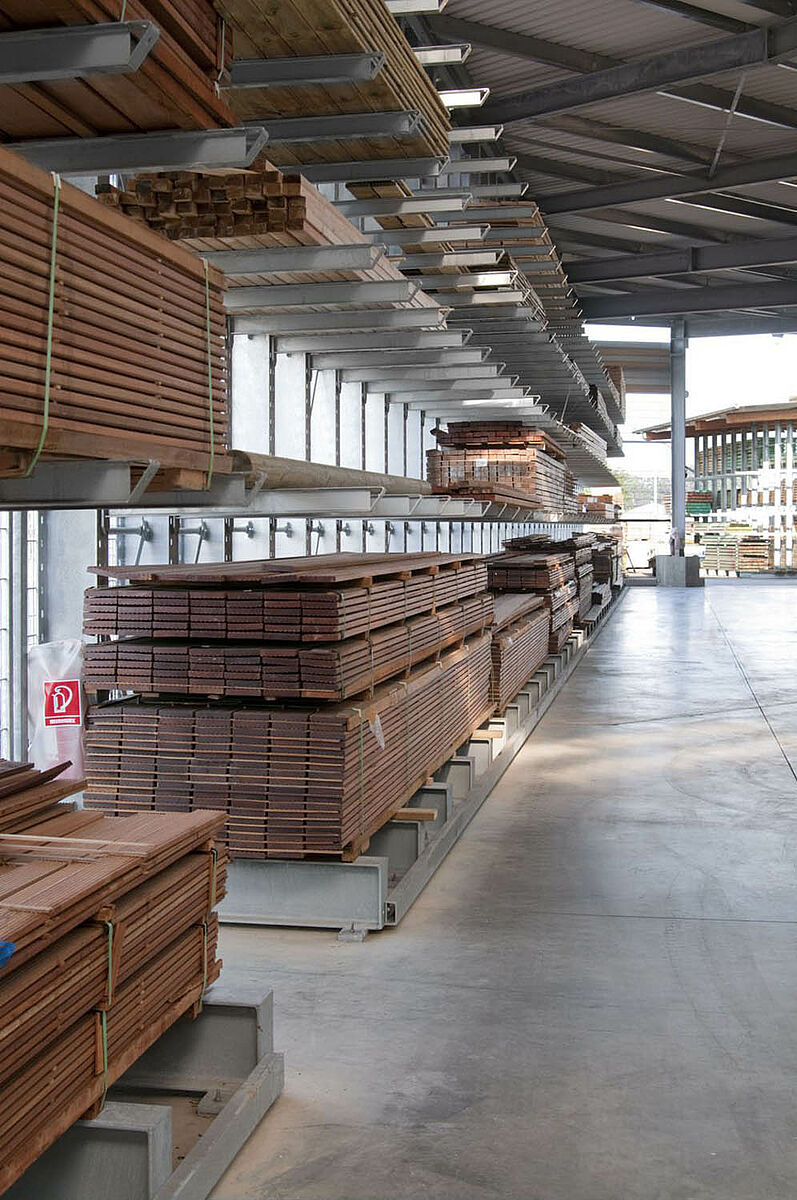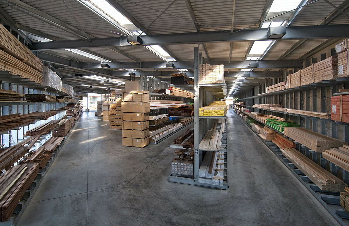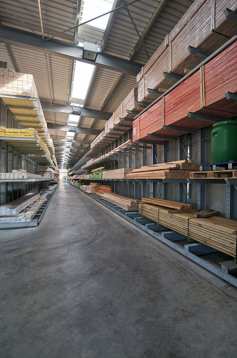 A empresa Schyns sediada em Siegburg oferece como empresa grossista e comércio a retalho um amplo sortido em madeiras para clientes privados e comerciais, desde madeira para a construção até para o jardim. Os artigos de madeira são armazenados em um depósito com estantes que vem sendo ampliado constantemente há mais de 20 anos. Assim com o passar dos anos as fileiras de estantes individuais transformaram-se um uma planta completa, que por sua vez mais tarde foi duplicada. Dessa forma todo o depósito pôde crescer junto com a empresa.