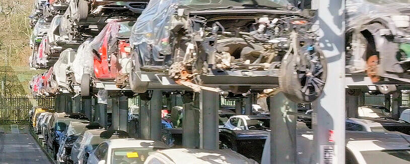 Em 2024, a Silverlake reciclou mais de 81.000 peças sobressalentes, o que corresponde à recuperação de cerca de 34.668 veículos. Para atingir esses números, são necessários processos eficientes. O que inclui o armazenamento seguro e com economia de espaço dos veículos. Por isso, a Silverlake optou pela instalação de um total de 19 estantes cantiléver da OHRA. Nas estantes com mais de 8 m de altura, podem ser armazenados veículos antigos com até 2 toneladas em 5 níveis de armazenamento. Os braços cantiléver de 2 metros de comprimento podem ser ajustados de forma flexível para cima ou para baixo em intervalos de 100 milímetros. Graças ao sistema de encaixe patenteado dos braços cantiléver, não são necessárias ferramentas para o ajuste. Assim, a Silverlake pode ajustar rapidamente a altura dos níveis de armazenamento, por exemplo, para armazenar também carrinhas ou SUVs.