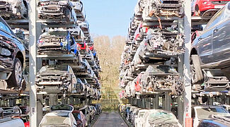 Para garantir acesso rápido e direto a um grande número de veículos em fim de vida, a Silverlake Automotive Recycling, sediada em Hampshire, utiliza estantes cantiléver da OHRA para armazenar carros, SUV e carrinhas. Com mais de 8 metros de altura, estas estantes permitem empilhar com segurança até cinco veículos de 2 toneladas. Cada corredor de estantes inclui calhas de guia, permitindoque os veículos em fim de vida útil possam ser armazenados e retirados com um empilhador lateral. Isto permite manter os corredores estreitos e instalar mais estantes na mesma área. A Silverlake pode, portanto, armazenar cerca de 2500 veículos em fim de vida útil no local.