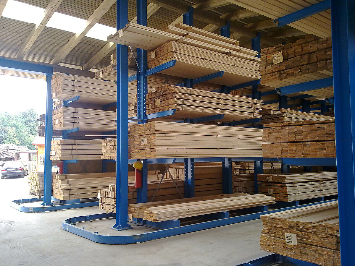 O novo depósito com três corredores e uma altura de 5,7 metros oferece no total uma capacidade de armazenagem de até 1.000 metros cúbicos. Os produtos de madeira são armazenados em quatro andares. Os braços portadores do sistema de estantes com um comprimento de 1.200 milímetros e carregáveis com 1.250 quilogramas são suspensos de maneira flexível e desviam choques, por exemplo, da empilhadeira. Além disso, o uso da empilhadeira é suportado pelos carris guia nas estantes: Na ŠVELC eles permitem o uso seguro de duas empilhadeiras com elevação combinada para 4 vias.