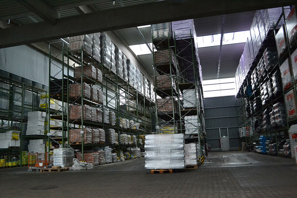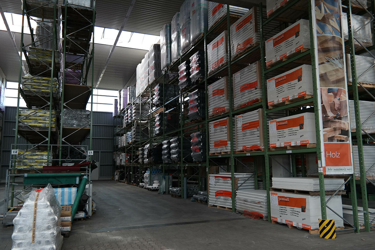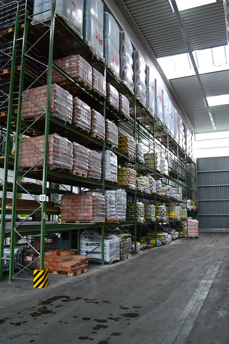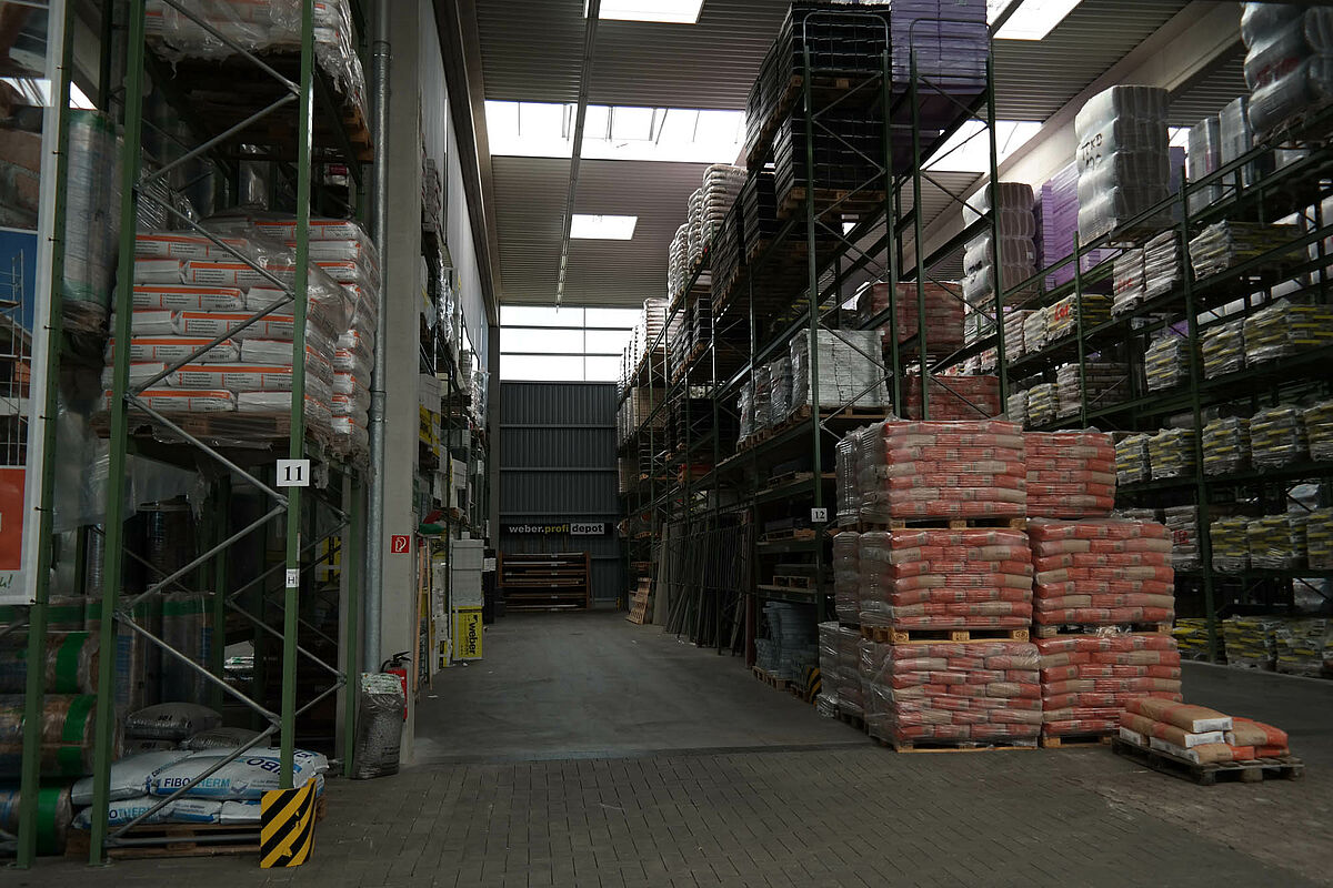 Por isso, a teambaucenter decidiu melhorar a qualidade do armazenamento com uma nova planta de armazenamento. A planta oferece mais espaço para um sortimento mais amplo de mercadorias e permite a reunião de todo o sortimento, sendo isto a base para caminhos curtos na preparação para a entrega. Mas sobre tudo com a nova planta agora podem ser armazenadas mais mercadorias sob teto e também a carga e descarga dos caminhões é realizada de forma protegida contra as condições meteorológicas.