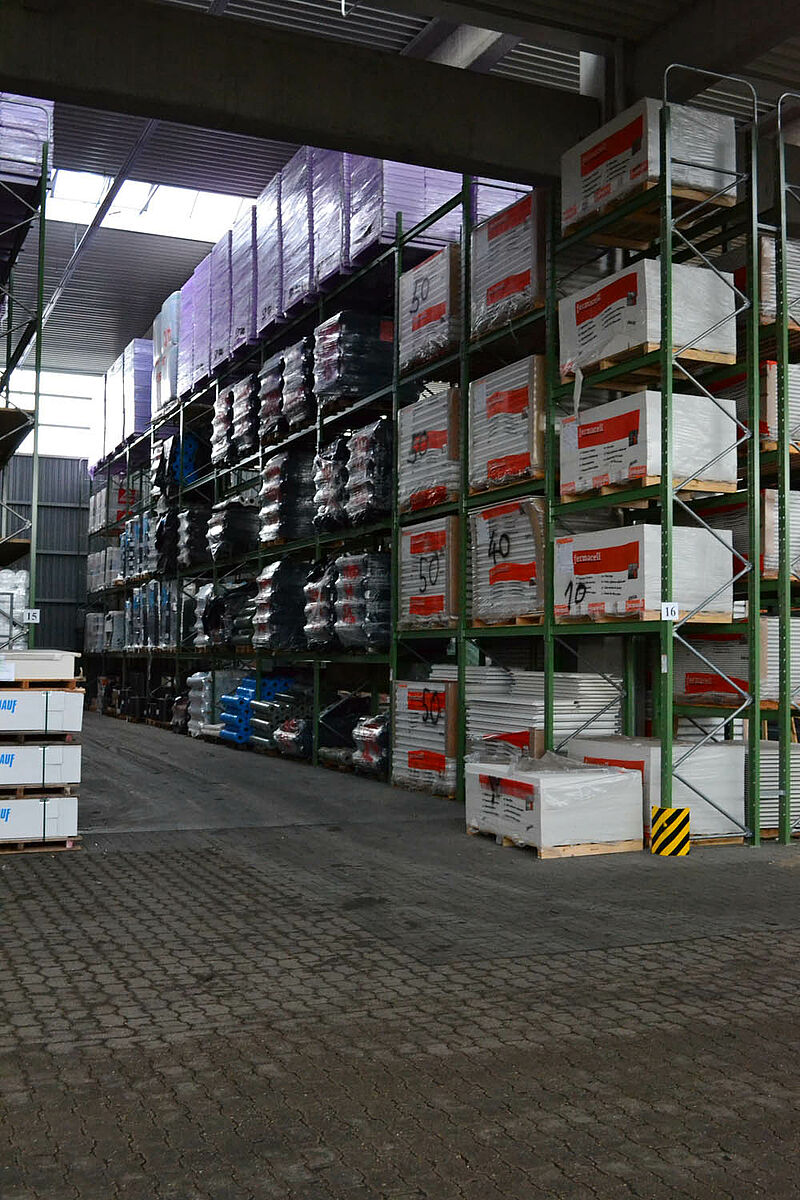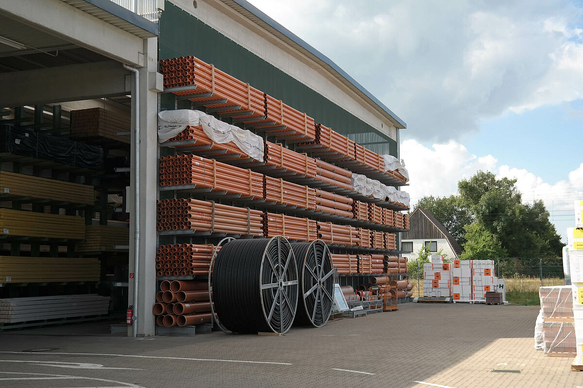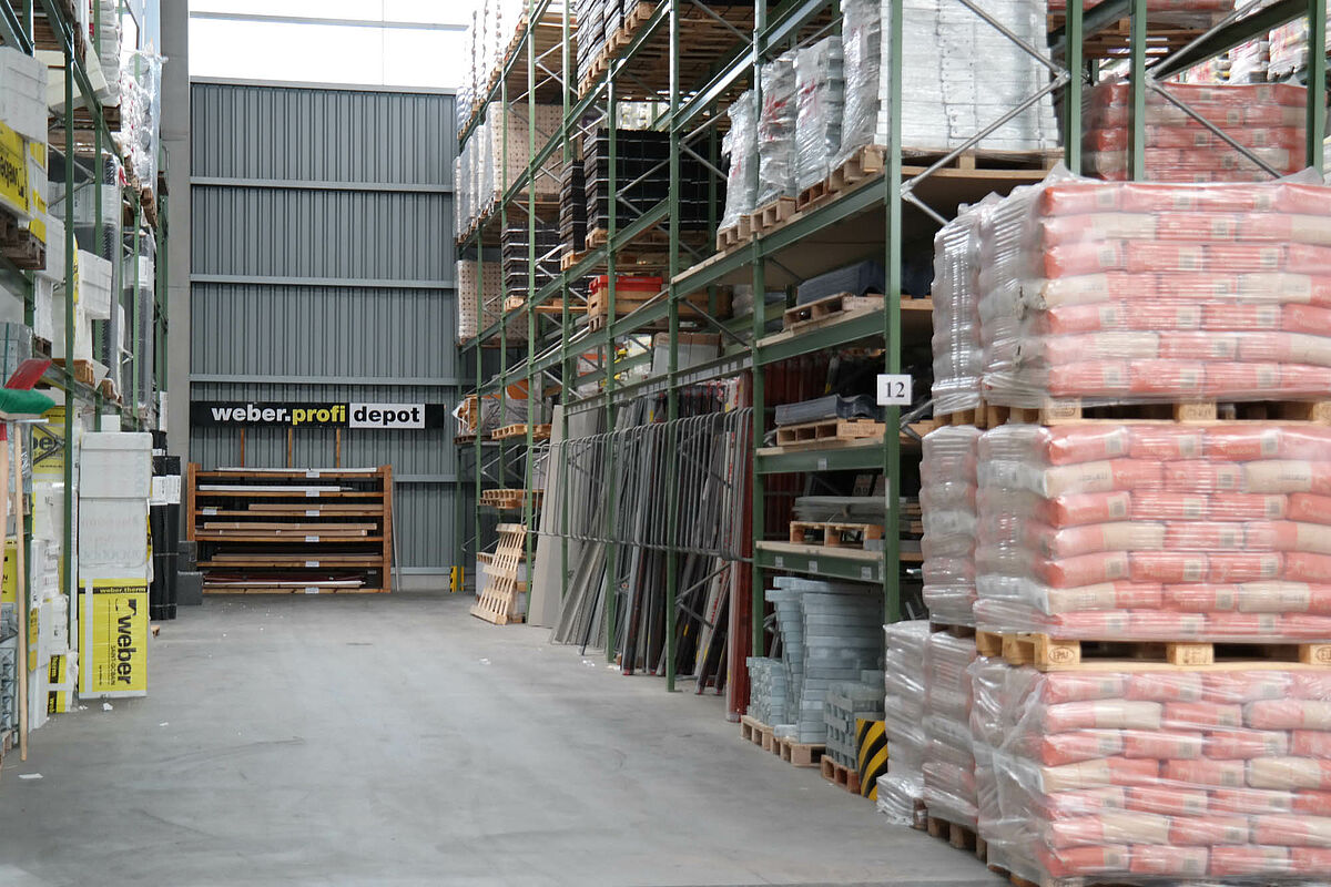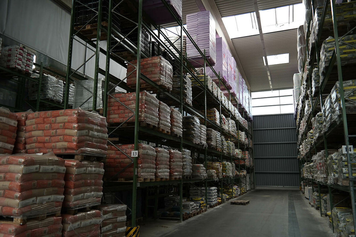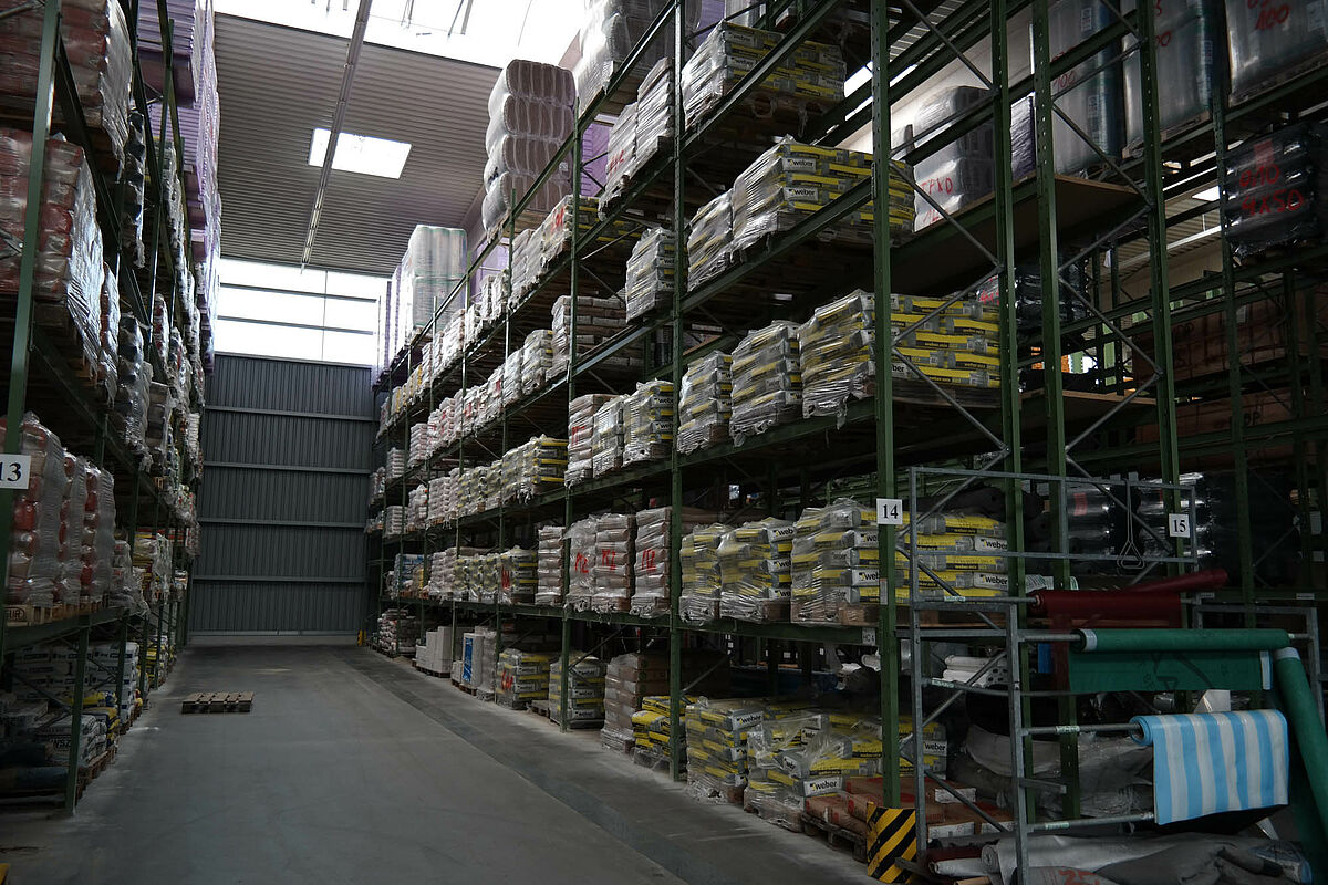 Por isso, a teambaucenter decidiu melhorar a qualidade do armazenamento com uma nova planta de armazenamento. A planta oferece mais espaço para um sortimento mais amplo de mercadorias e permite a reunião de todo o sortimento, sendo isto a base para caminhos curtos na preparação para a entrega. Mas sobre tudo com a nova planta agora podem ser armazenadas mais mercadorias sob teto e também a carga e descarga dos caminhões é realizada de forma protegida contra as condições meteorológicas.