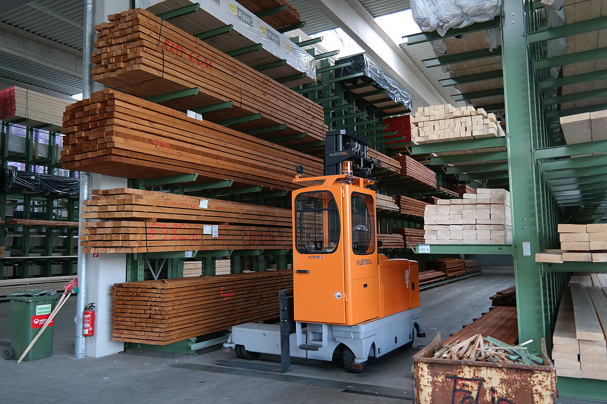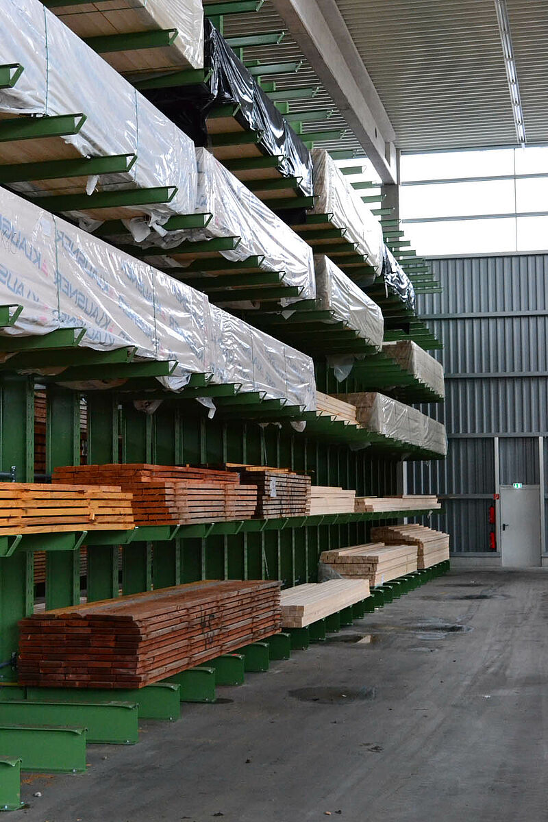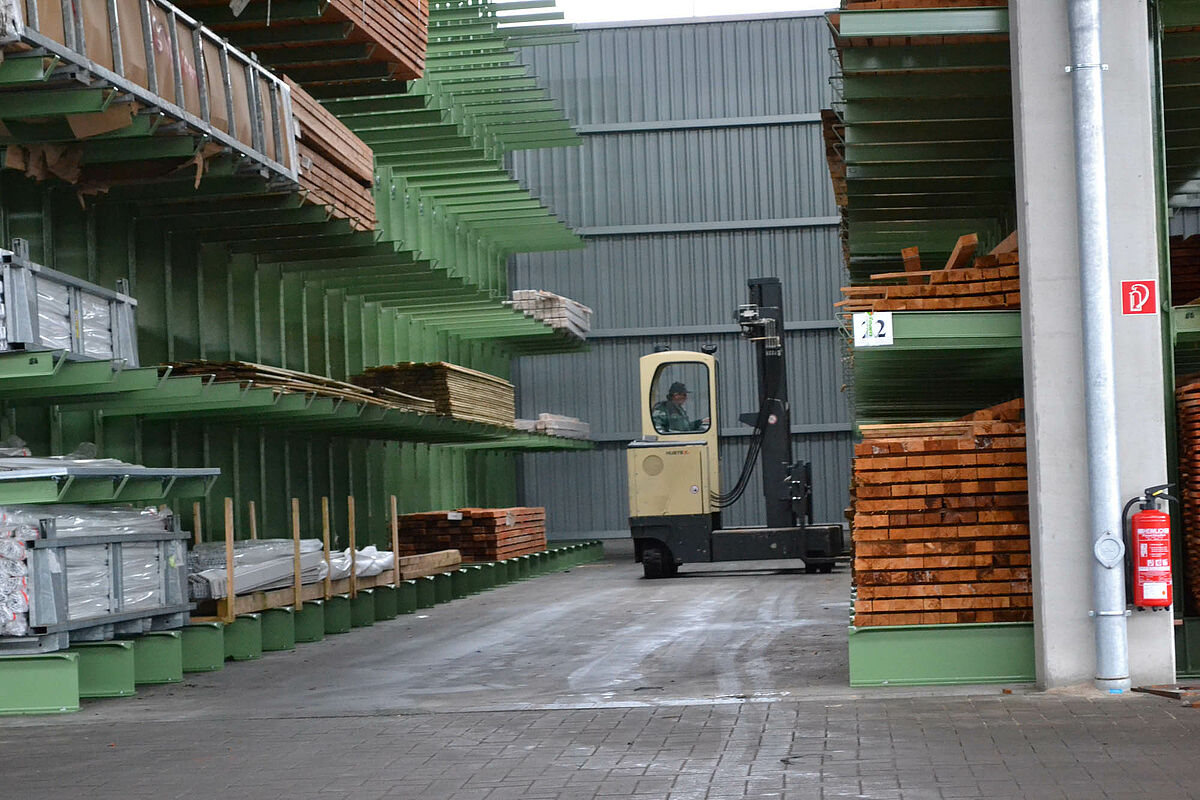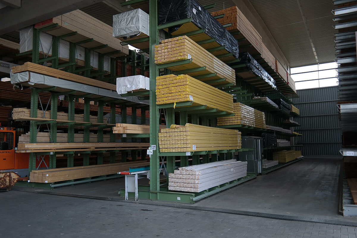 Até agora o centro de construção armazenava os materiais em um armazém em bloco apenas parcialmente com teto. Além disso, a madeiras de até 13 metros de comprimento eram armazenadas em uma estante no exterior. As capacidades de armazenamento sob teto eram até então poucas e a madeira ficava em parte exposta às condições meteorológicas. Ao transportar as mercadorias no armazém em bloco os produtos sempre resultavam danificados.