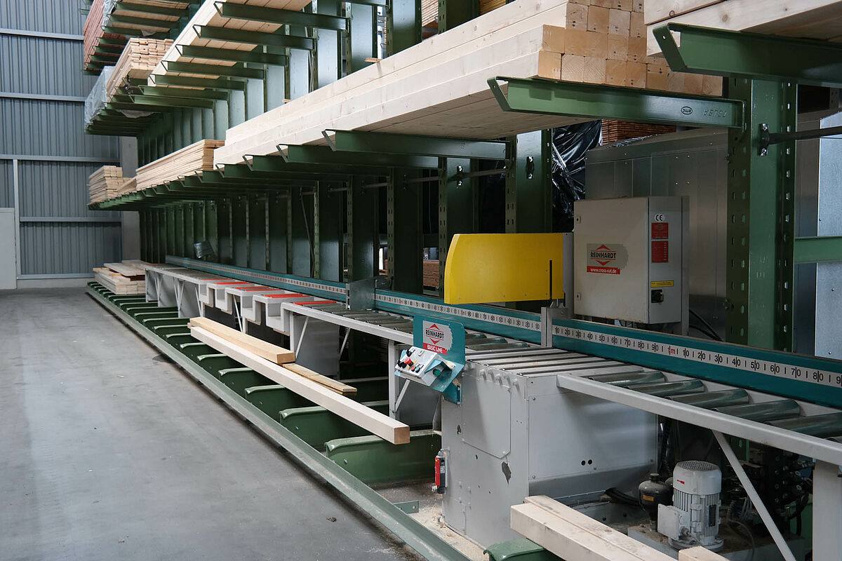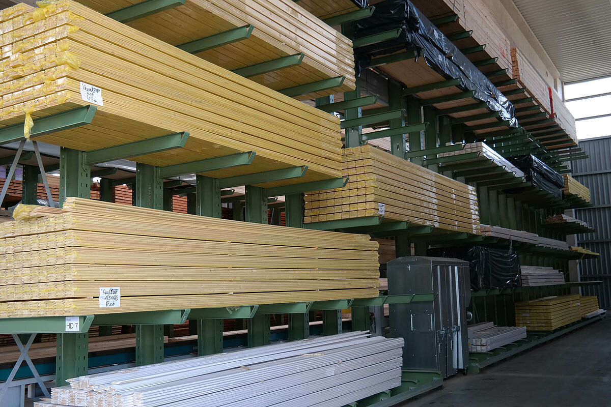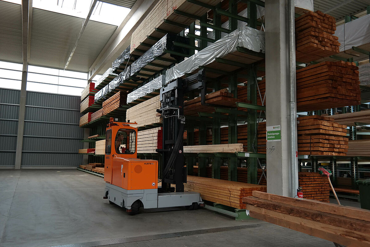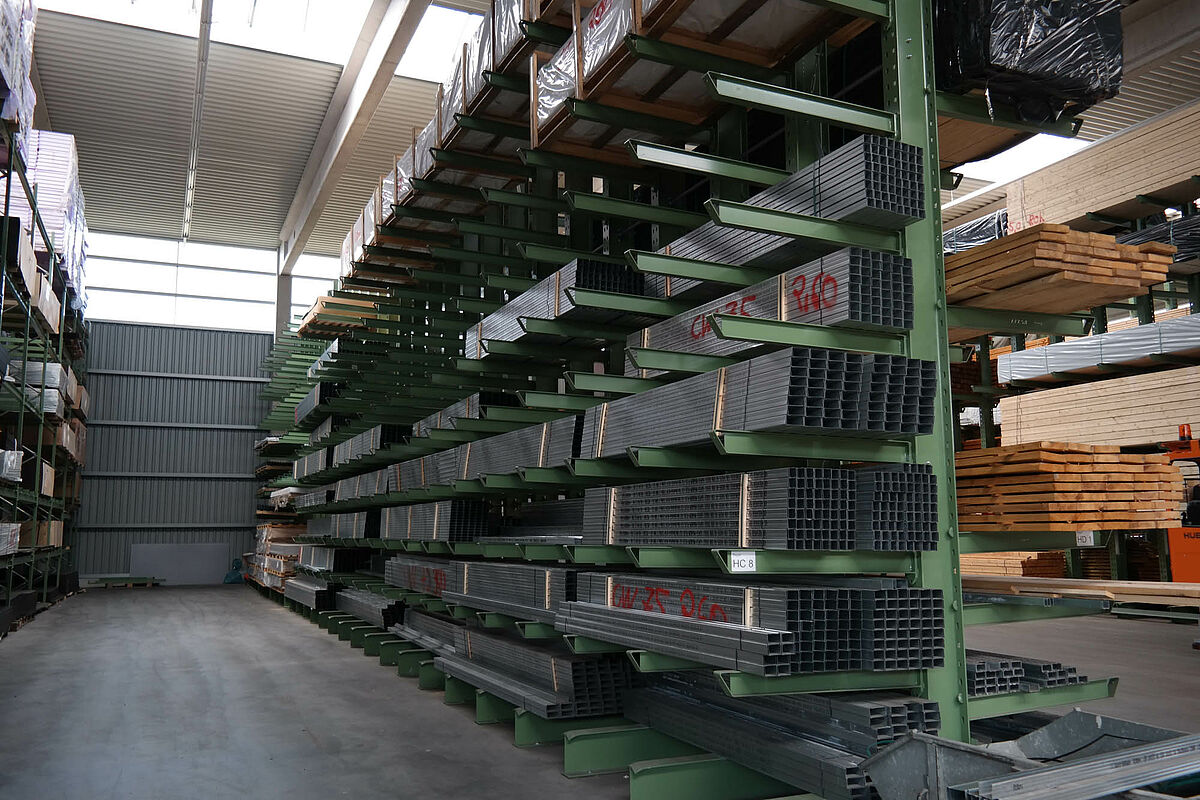Até agora o centro de construção armazenava os materiais em um armazém em bloco apenas parcialmente com teto. Além disso, a madeiras de até 13 metros de comprimento eram armazenadas em uma estante no exterior. As capacidades de armazenamento sob teto eram até então poucas e a madeira ficava em parte exposta às condições meteorológicas. Ao transportar as mercadorias no armazém em bloco os produtos sempre resultavam danificados.