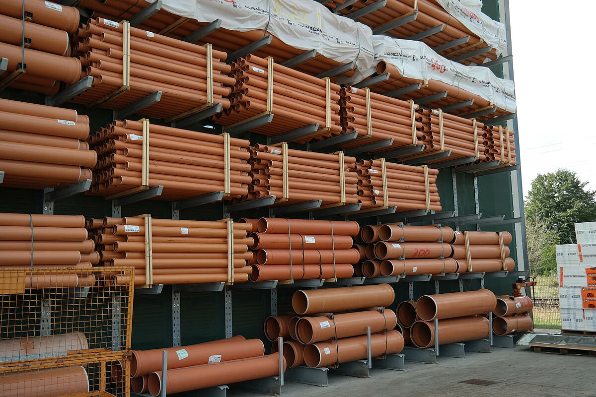 A empresa teambaucenter em Eggebek, líder nos sectores do comércio de materiais e de construção na Alemanha do norte com uma nova planta de armazenamento pode aumentar claramente a qualidade do armazenamento das suas mercadorias. Agora os produtos estão protegidos das condições meteorológicas. As estantes para paletes e com braços portadores feitas à medida para os diferentes artigos pela empresa especialista em armazenamento OHRA de Kerpen reduzem os danos na mercadoria armazenada.