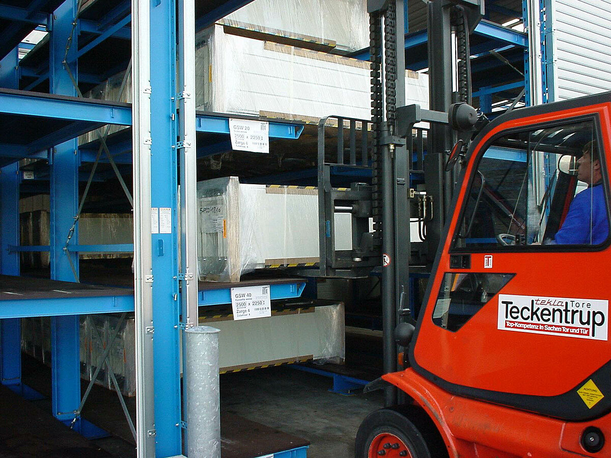 Uma das principais fabricantes de sistemas de portão, empresaTekla em Verl, Sürenheide, há muito tempo cliente da OHRA, efetuou uma interessante extensão do seu armazém para produtos acabados. Em diferentes localidades da Alemanha, Tekla produz principalmente portões sob medida ou em pequenas quantidades. Em Verl, são produzidos portões duplos e deslizantes que são armazenados em porta paletes OHRA para posterior distribuição.