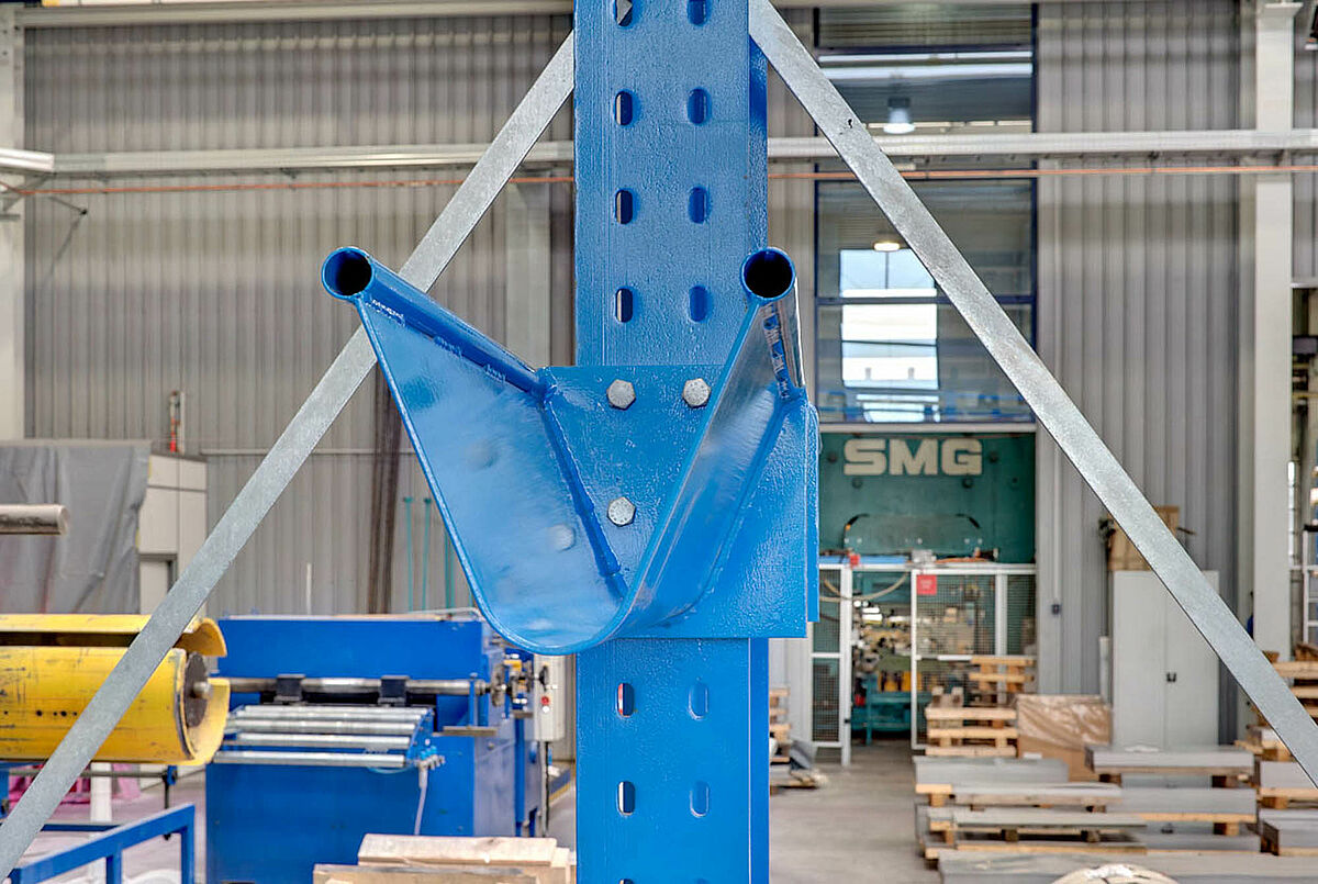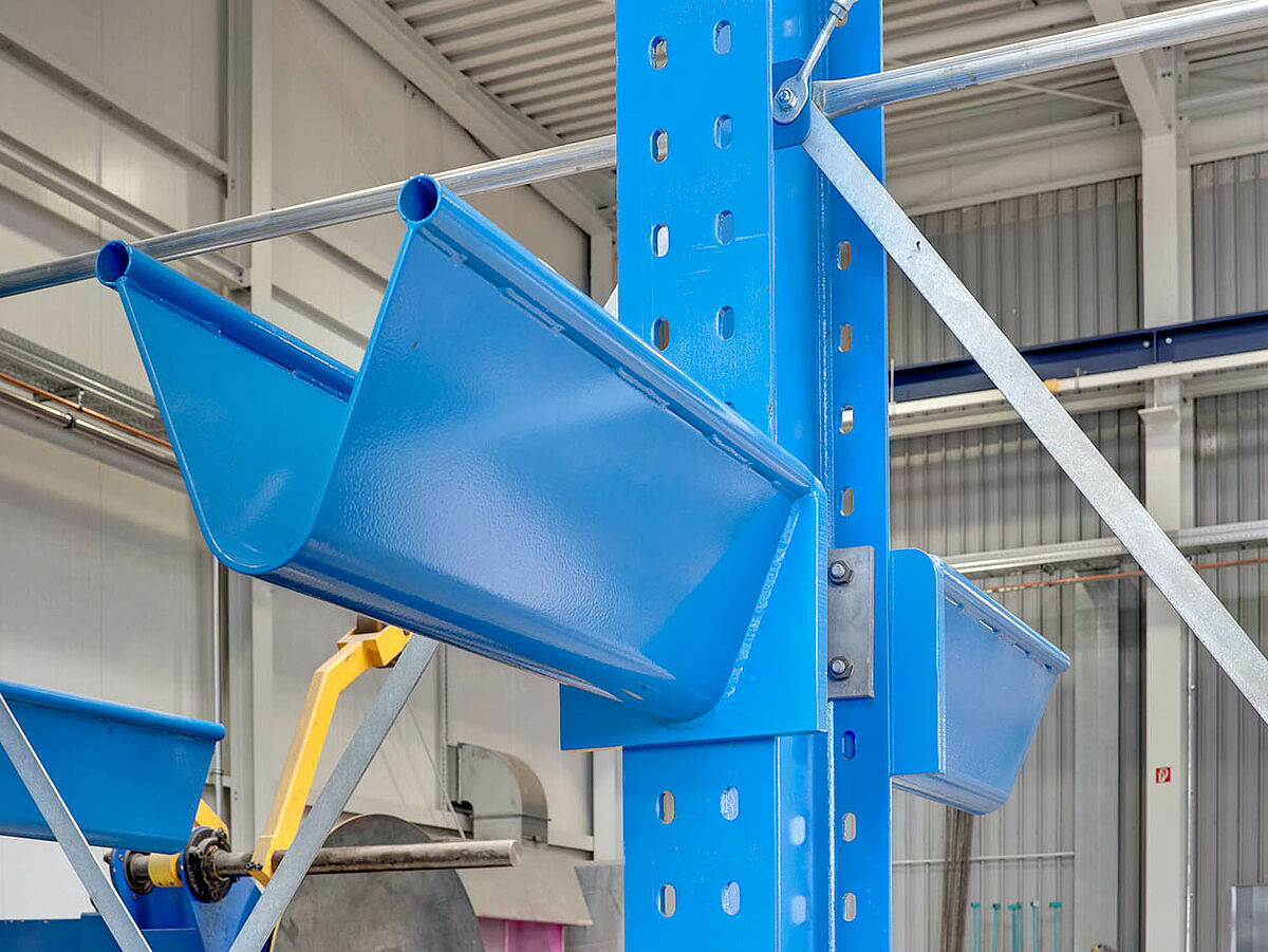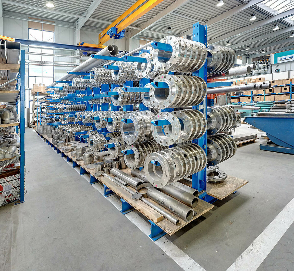 Além de materiais não processados, também outras peças, tais como flanges são armazenadas em estantes sólidas Cantilever. Essas flanges são necessárias para a conexão com o permutador de calor. Quatro flanges são usados para cada permutador de calor de placas. Assim, um número proporcionalmente elevado dessas peças deverão estar sempre disponíveis em estoque.