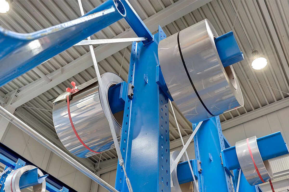 Para fabricar estes dispositivos, chapas de aço são utilizadas, as quais serão fornecidas como bobinas para a produção imediata. As bobinas têm, dependendo do componente, várias larguras fixas e são, portanto, de diferentes pesos.