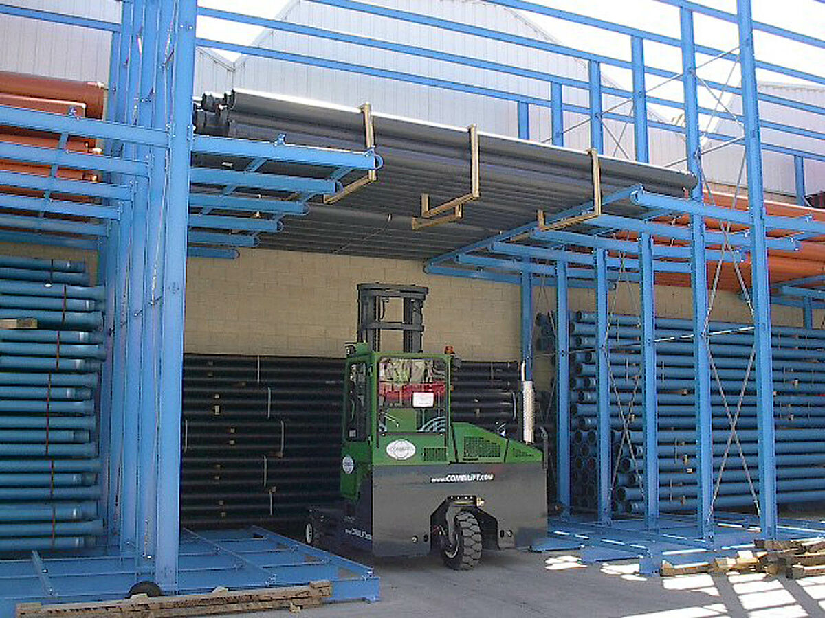 Em virtude da crescente demanda nesse ramo na Espanha, o armazém do cliente já não atendia mais as expectativas do mercado. Com armazenamento "caótico", principalmente de PVC e tubos de metal, o chão da área aberta foi rapidamente estragado. Os feixes de tubo foram espalhados por toda o depósito, causando dificuldade na hora de recolher e identificar produtos selecionados. Esta perda de tempo durante as manobras com o produto logo se tornou aparente. Durante um ano o tempo perdido aumentou para milhares de horas e, inclusive, provocou o cancelamento de muitos pedidos, pois o cliente não conseguia superar o desafio logístico provocado pela desorganização do depósito.