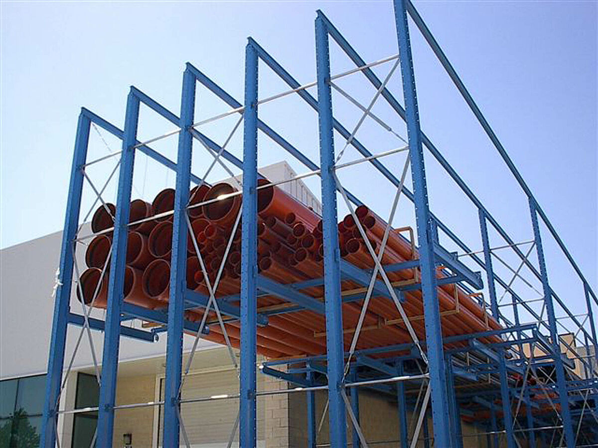 Posteriormente, o consultor trabalhou com base em informações obtidas a partir da avaliação do armazém, e com as considerações, requisitos e demandas do cliente. A idéia era armazenar volumosos tubos metálicos e de PVC em um sistema drive-in. Este sistema permite armazenar feixes do mesmo tubo e também de variedades e tamanhos diversos Dependendo da necessidade, esses itens podem ser compactamente armazenados em diferentes níveis e com economia de espaço.