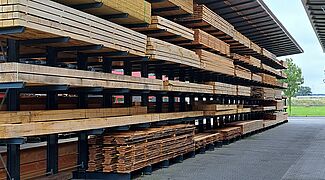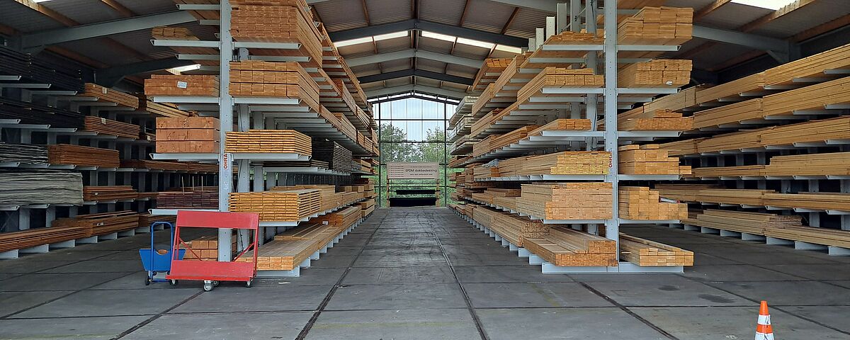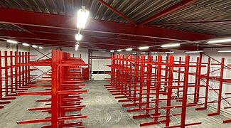 Devido à experiência positiva que a van Deuveren já tinha tido com as estantes da OHRA, a nova sede da empresa também foi equipada com sistemas de estantes do líder de mercado europeu de estantes cantiléver. A OHRA fabrica os suportes da estante e os braços em cantiléver a partir de perfis de aço IPE laminados a quente de parede inteira, o que significa que as estante cantilever permanecem permanentemente estáveis mesmo quando totalmente utilizadas e garantem um elevado nível de segurança para o pessoal e os clientes. Por norma, a OHRA fabrica as estantes individualmente, de acordo com as exigências do cliente - na van Deuveren, isto aplica-se não só às dimensões e capacidades de carga, mas também à cor.