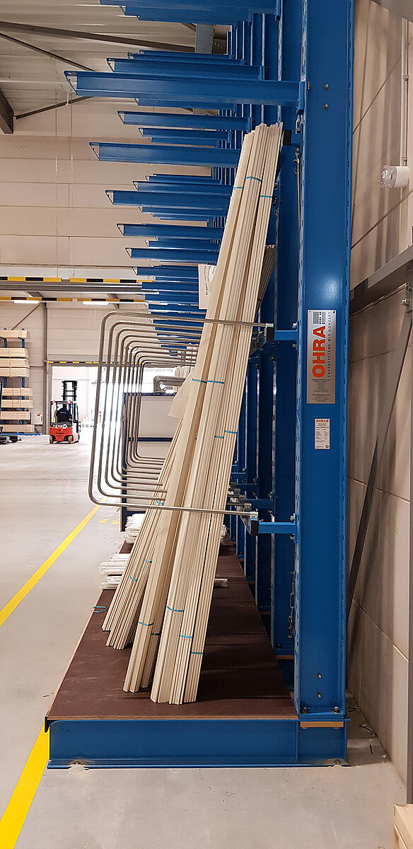 Os sistemas de estantes da OHRA já haviam comprovado o seu valor na unidade de Gouderak, pelo que foram opção para a nova unidade também equipada com sistemas de armazenamento do líder de mercado europeu. A flexibilidade das estantes é também um fator positivo: as grades metálicas das estantes cantilever permitem o armazenamento contínuo de várias dimensões de paletes e produtos sem suportes intermédios pesados. Os produtos ficam protegidos durante o armazenamento e a recolha. Graças à construção robusta das estantes, com todos os elementos de suporte de perfis de aço sólidos, são possíveis capacidades de carga elevadas na estante porta-paletes com uma largura de compartimento de 4.200 mm e uma capacidade de 7.377 kg por par de viga.