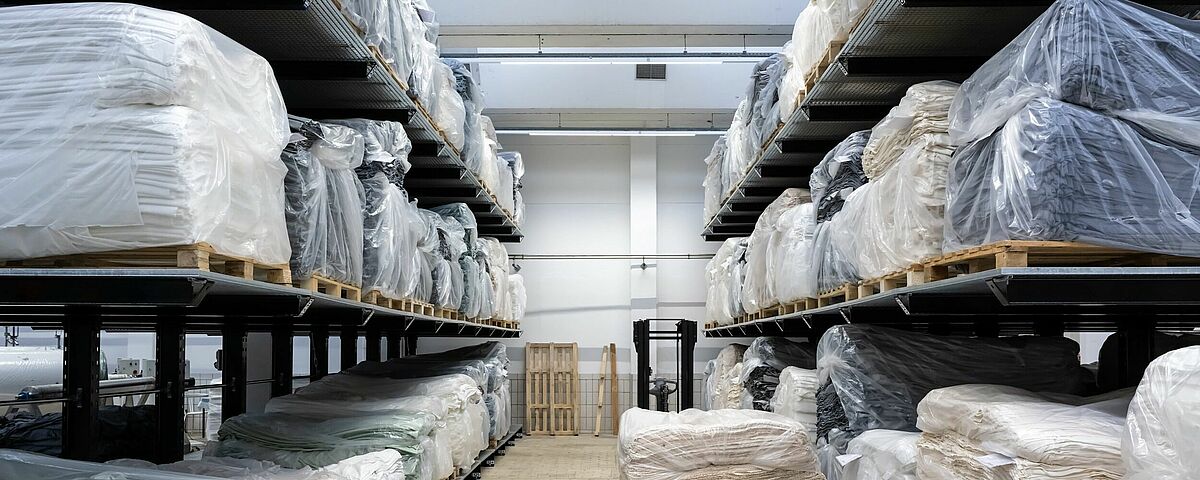 A trigema, o maior fabricante de vestuário desportivo e de lazer da Alemanha, conseguiu abastecer a sua produção de forma significativamente mais eficiente ao substituir o armazenamento no chão por estantes cantiléver. Para isso, a OHRA instalou estantes cantiléver e estantes porta-paletes, onde os tecidos produzidos na sua própria fábrica de malhas são armazenados temporariamente antes de seguirem para o acabamento. As grelhas permitem armazenar tecidos em diferentes estados, independentemente do seu formato ou dos meios auxiliares de transporte. Graças a este novo sistema de armazenamento, a trigema aumentou a eficiência da produção em 5%.