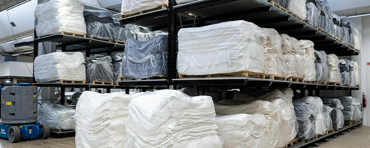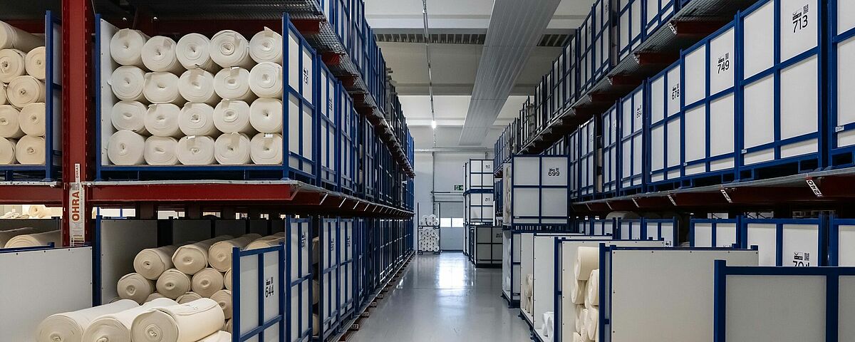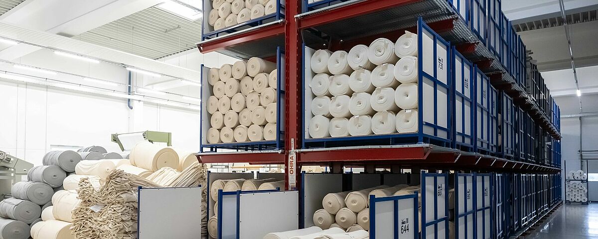 O foco principal da reestruturação foi a transição do armazenamento no chão para um sistema em estantes. Como era necessário acomodar diferentes tipos de tecidos em vários estados, a trigema optou por estantes porta-paletes e estantes cantiléver da OHRA. Para evitar interrupções na produção, a instalação foi realizada num único fim de semana. As estantes porta-paletes foram parcialmente equipadas com pisos em contraplacado e grelhas, enquanto as estantes cantiléver receberam pisos em grelha, criando assim uma superfície contínua de armazenamento.