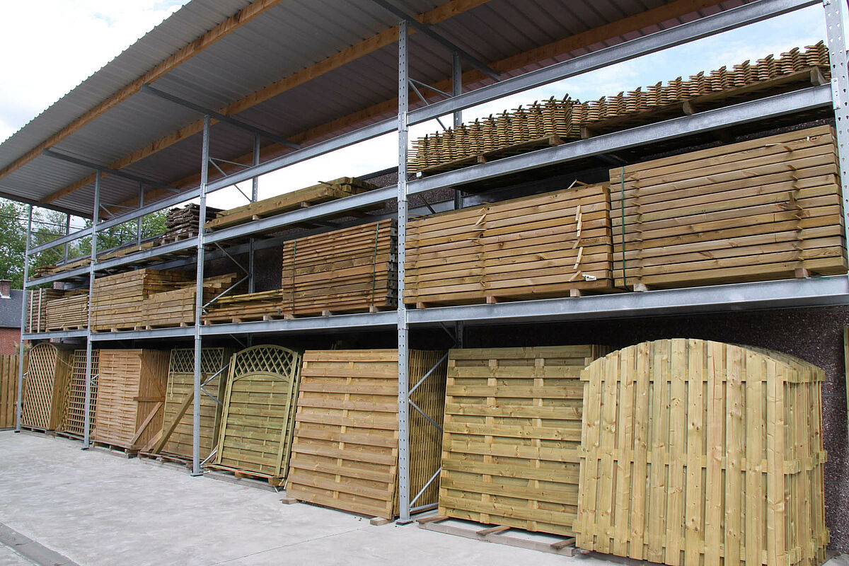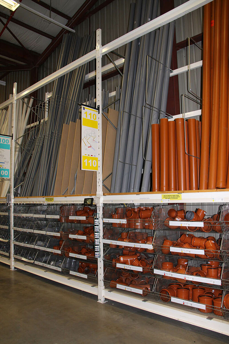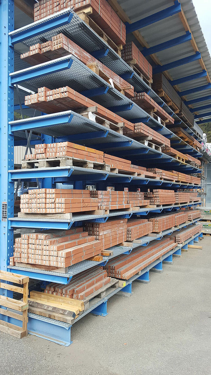 Para muitos produtos, como calhas, perfis, barras ou tubos, as estantes verticais são o tipo de armazenamento perfeito. Várias qualidades e medidas podem ser apresentadas no armazém ou no espaço de vendas, estando separadas e acessíveis.