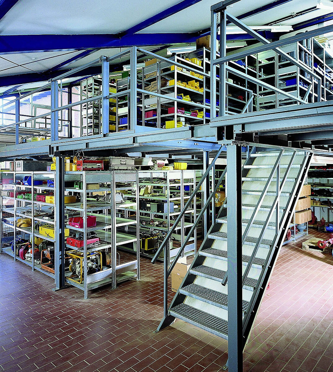 Cada metro quadrado da sua superfície comercial custa dinheiro. Portanto, aproveite a altura de forma otimizada e obtenha uma superfície de armazenamento suplementar sem alterar o corpo de construção existente. A estrutura Auto sustentadora adequa-se a qualquer armazém existente e pode ser individualmente adaptada às suas condições de espaço. Através da forma de construção robusta de perfis em aço laminados a quente para os elementos de sustentação, a capacidade de carga até 1.000kg/m² corresponde à nossa capacidade padrão. Dependendo das necessidades, podemos também conceber para capacidades de carga mais elevadas. As plataformas construídas em aço da OHRA podem ser aproveitadas com versatilidade. Independentemente de se tratar da superfície de armazenamento suplementar, da zona de expedição, da superfície de venda ou do posto de trabalho, as possibilidades de estruturação individuais são versáteis.
