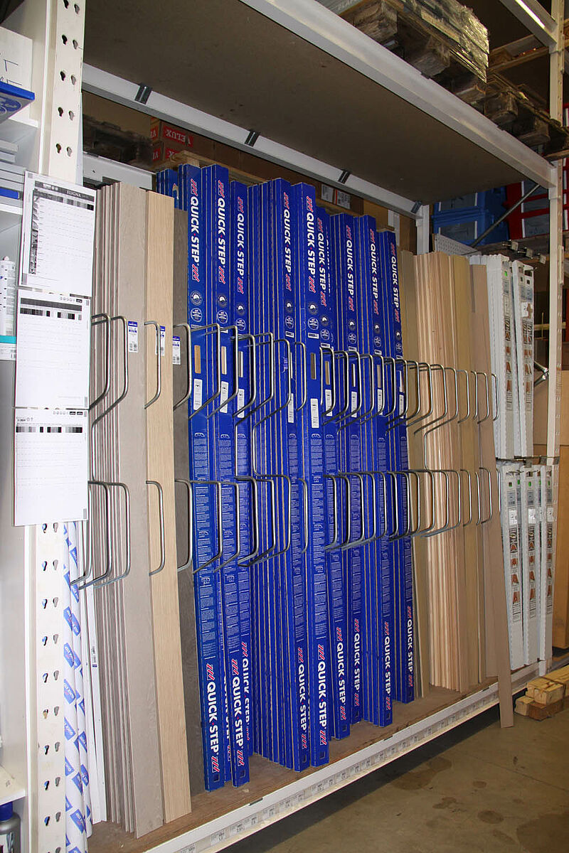 Para muitos produtos, como calhas, perfis, barras ou tubos, as estantes verticais são o tipo de armazenamento perfeito. Várias qualidades e medidas podem ser apresentadas no armazém ou no espaço de vendas, estando separadas e acessíveis.