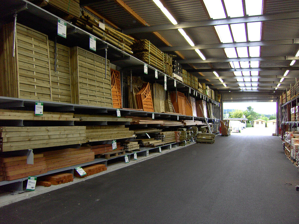 Em armazéns de bricolage, centros de jardinagem e lojas, são necessárias áreas de armazenamento para produtos pesados como madeira, tintas, ferramentas ou sacos de areia e cimento. Para estas áreas de aplicação existem as estantes de palatização robustas da OHRA. Estas são constituídas em perfis em aço laminado a quente em vez de chapa fina e evidenciam-se assim enquanto eficientes e seguras precisamente em caso de cargas elevadas. Estas características das estantes podem ser especialmente observadas nos locais onde os colaboradores ou os clientes se movimentam. A elevada qualidade garante uma solução para o seu armazém duradoura e assim económica.