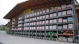 A OHRA é especialista em estantes porta-paletes com telhado. Para produtos sensíveis a intempéries, que podem ser armazenados em estantes no exterior, não há alternativa melhor. As estantes com telhado adequam-se especialmente ao comércio especializado com uma gama de produtos da área da jardinagem ou do comércio de materiais de construção em que podem ser armazenados no exterior componentes acabados de betão, produtos ensacados em paletes ou elementos de construção em madeira.
