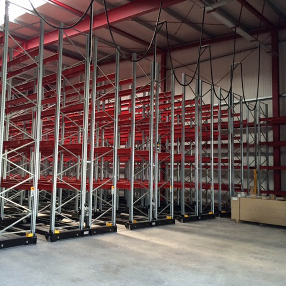 As estantes porta-paletes sobre bases móveis são sistemas de estantes dinâmicos e adequam-se a produtos em paletes que necessitam de ser armazenados de forma compacta, numa superfície reduzida. Neste sistema de armazenamento, as robustas estantes porta-paletes são montadas sobre bases móveis resistentes à deformação. A fila de estantes completa é movida por meio de controlo eletrónico ou manualmente, como uma única unidade de estantes. As bases móveis deslocam-se sobre carris, que podem ser montados tanto numa nova construção, como em pavimentos já existentes. Assim, cada bloco de estantes do sistema de estantes porta-paletes requer apenas um corredor de acesso. Tal contribui para um elevado nível de utilização do espaço, uma vez que apenas fica aberto o corredor no qual é feita a carga ou descarga do produto.