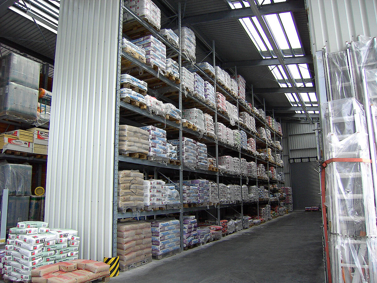 Os armazéns de estantes porta-paletes podem ser produzidos como armazéns abertos ou totalmente fechados, incluindo portas simples e portas rolantes. Os perfis de estruturas cortados das estantes porta-paletes servem também para a aplicação do revestimento de parede do armazém de estantes. Se tal for solicitado, o revestimento de parede e a cobertura do telhado, incluindo a drenagem, podem ser realizados pela OHRA.