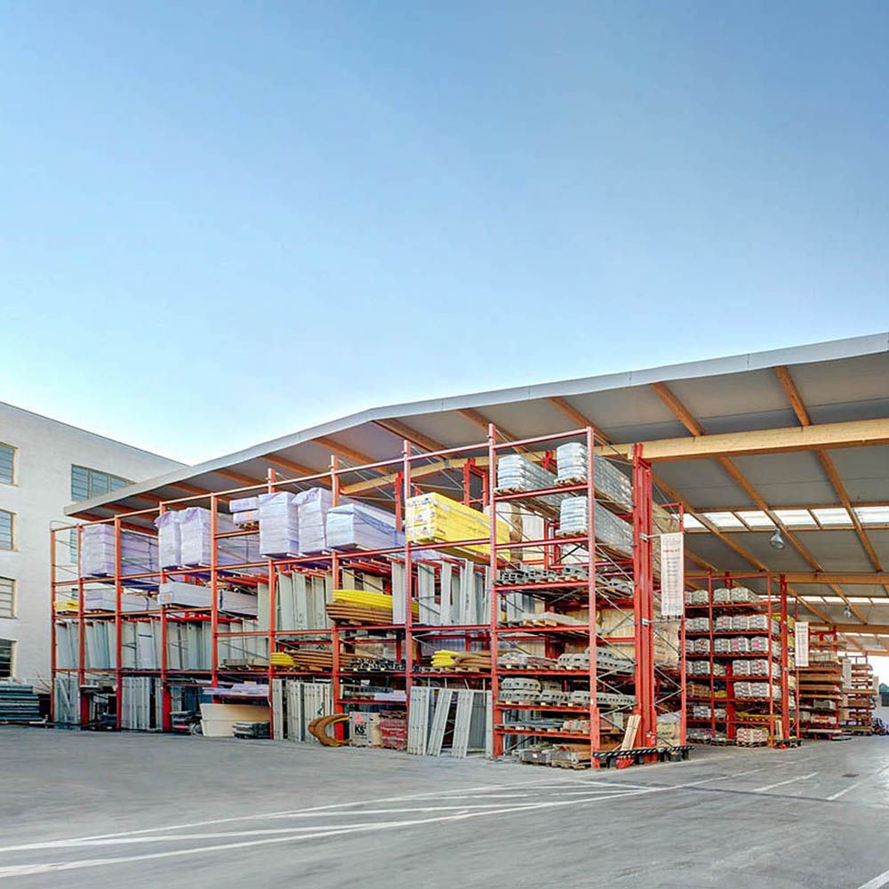 As colunas das estantes cantilever são produzidas a partir de perfis de aço IPE laminados a quente, têm elevadas capacidades de carga e são extremamente elásticas. Dependendo dos requisitos e da utilização do pavilhão, as colunas das estantes podem ser preparadas em conformidade para ser inseridas no telhado. Regra geral, os armazéns de estantes são produzidos com um telhado de uma ou de duas águas. A parte traseira cortada das colunas serve simultaneamente para a aplicação do revestimento de parede. A cobertura do telhado, incluindo a drenagem, pode, se tal for solicitado, ser realizada pela OHRA.